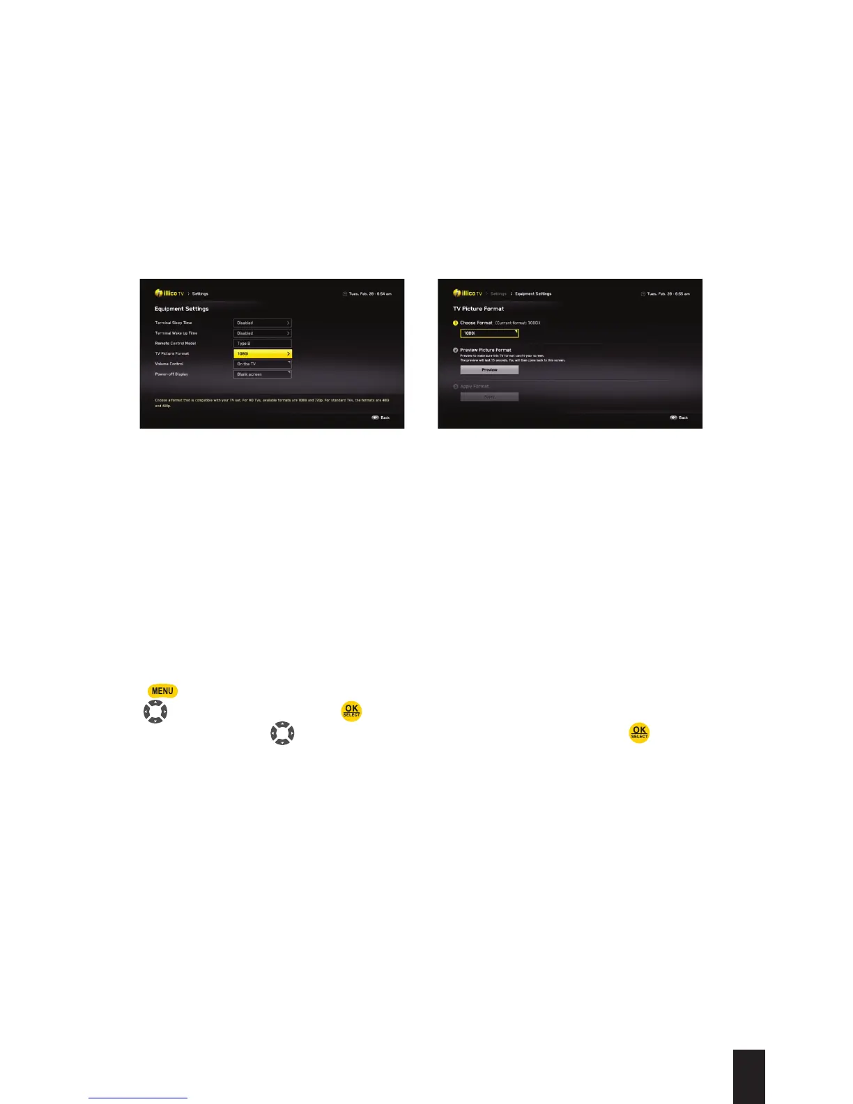 • The picture resolution: It is important to choose a 1080i or 720p resolution, depending on
