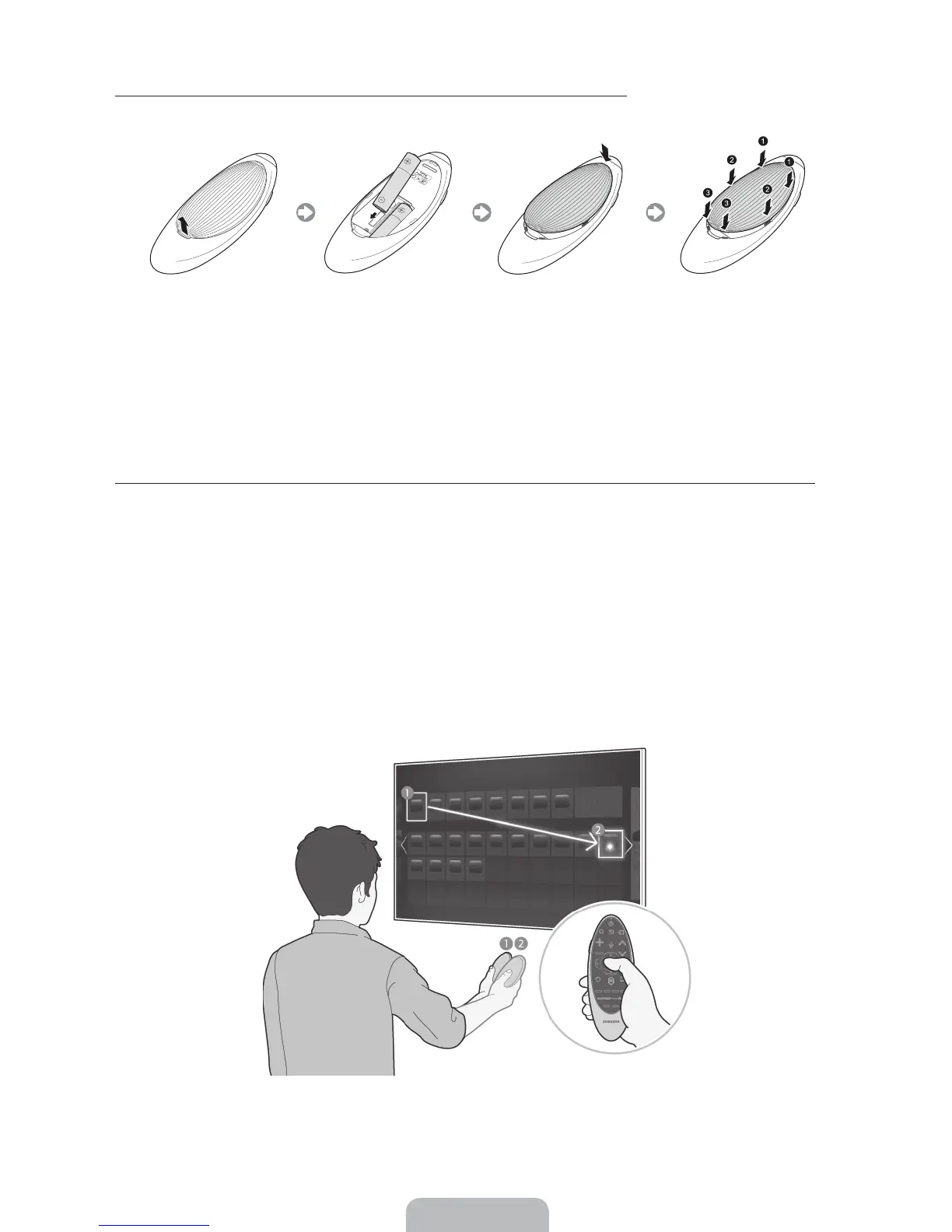 To use the Samsung Smart Control, insert the batteries into the device referring to the figure below.
