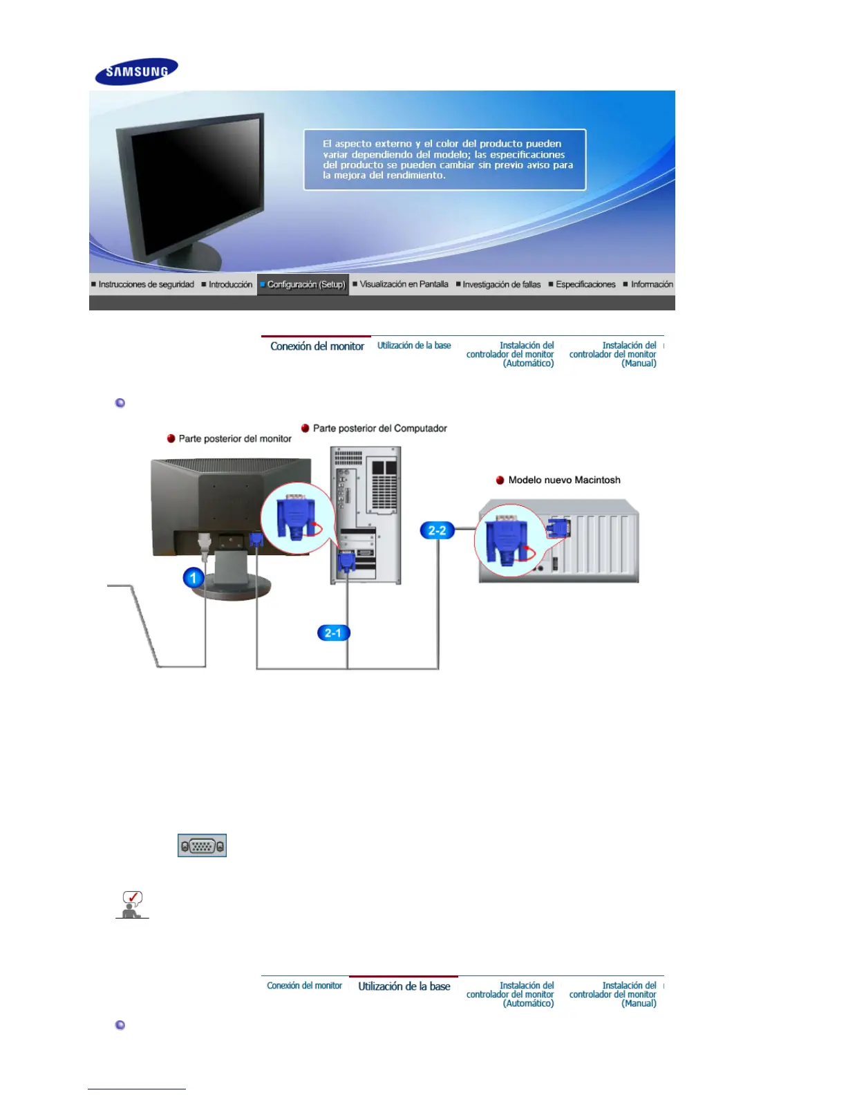 Conecte el monitor al equipo Macintosh usando el cable de conexión D-sub.