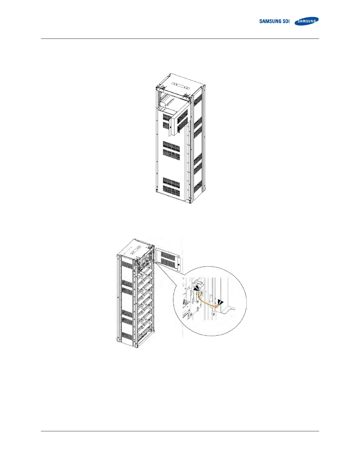 2. Remove the earth cable from the rack frame to the front door. Do not misplace the two screws and the earth cable.