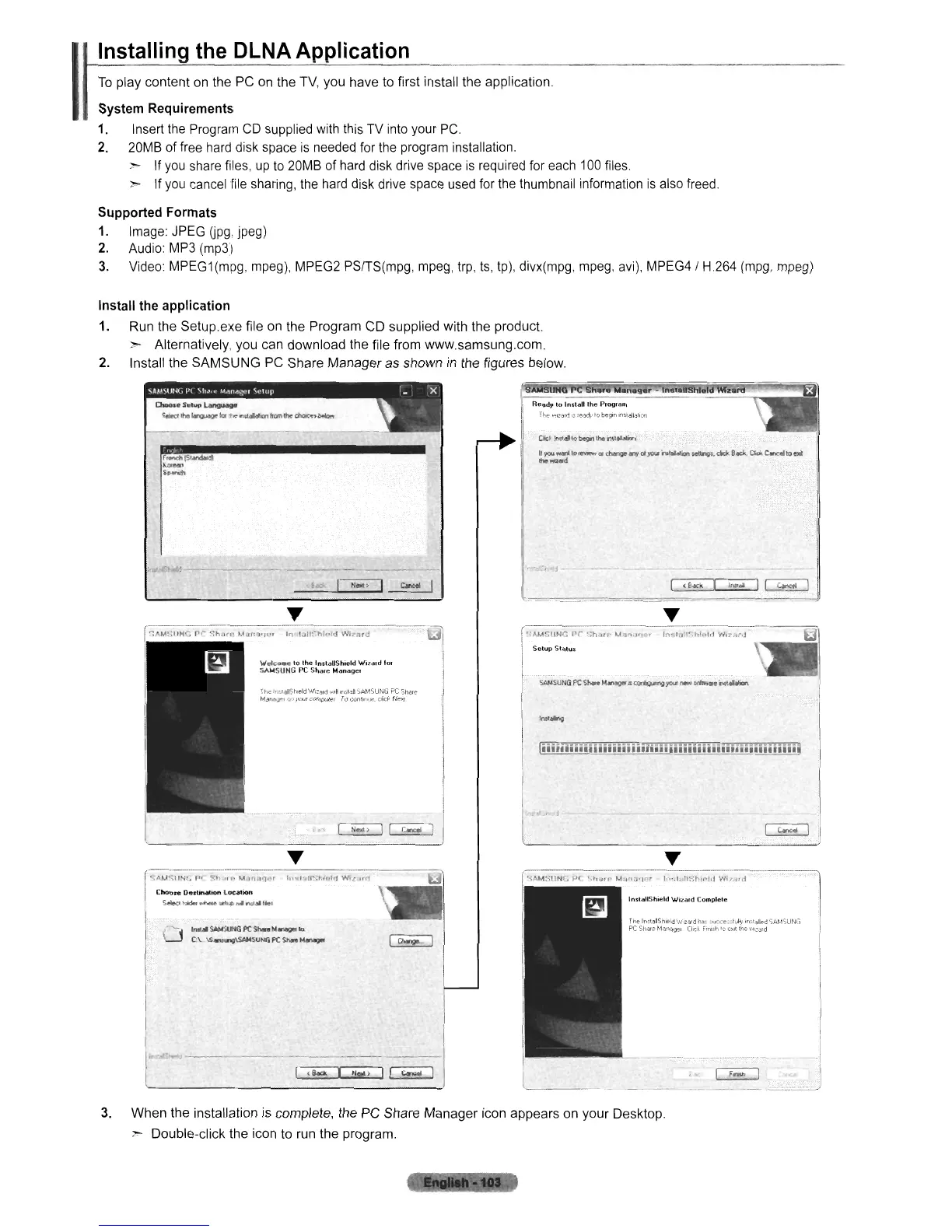 Install the SAMSUNG PC Share Manager as shown