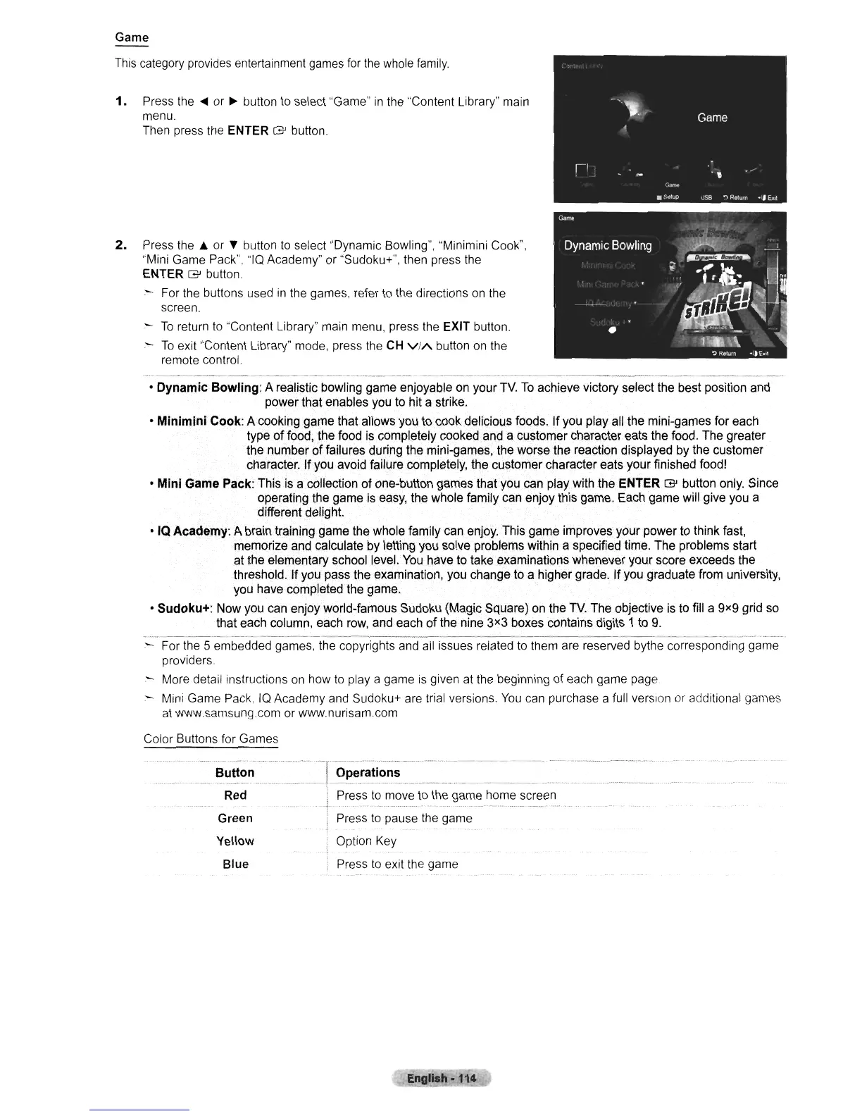the games, refer to the directions on the