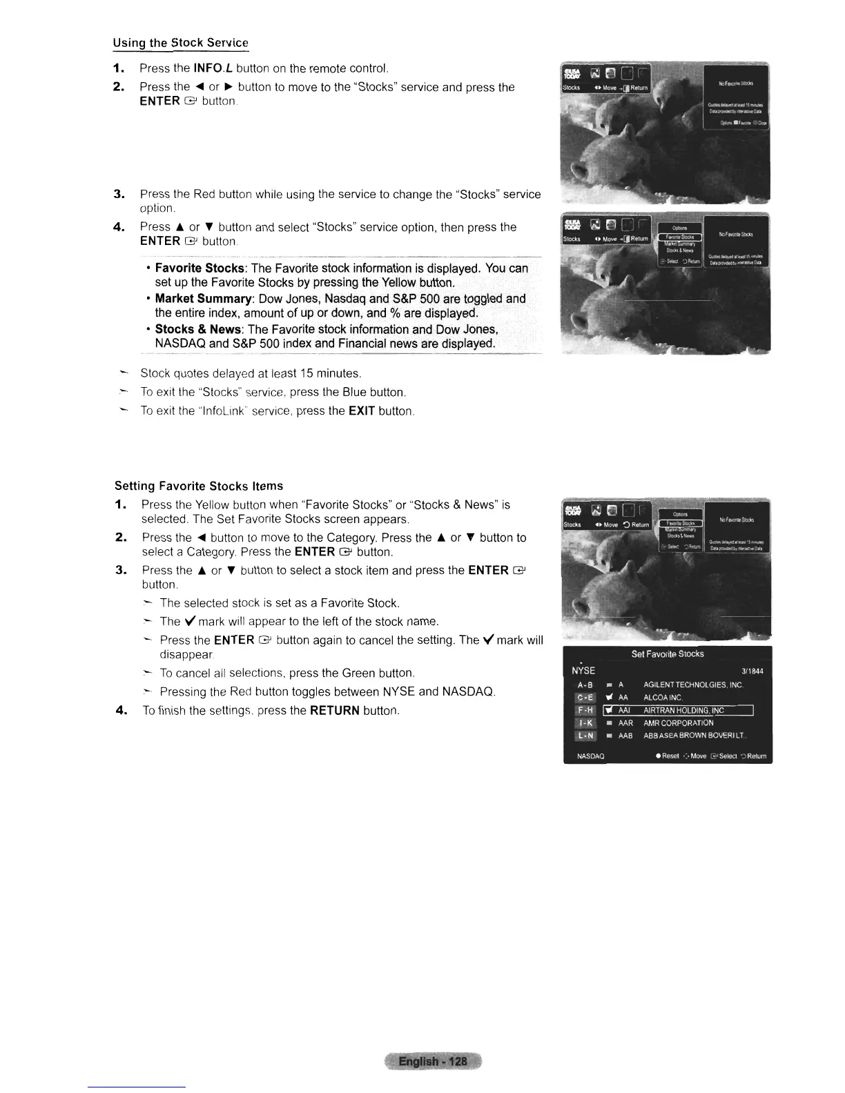 Press the Yellow button when "Favorite Stocks" or "Stocks & News"