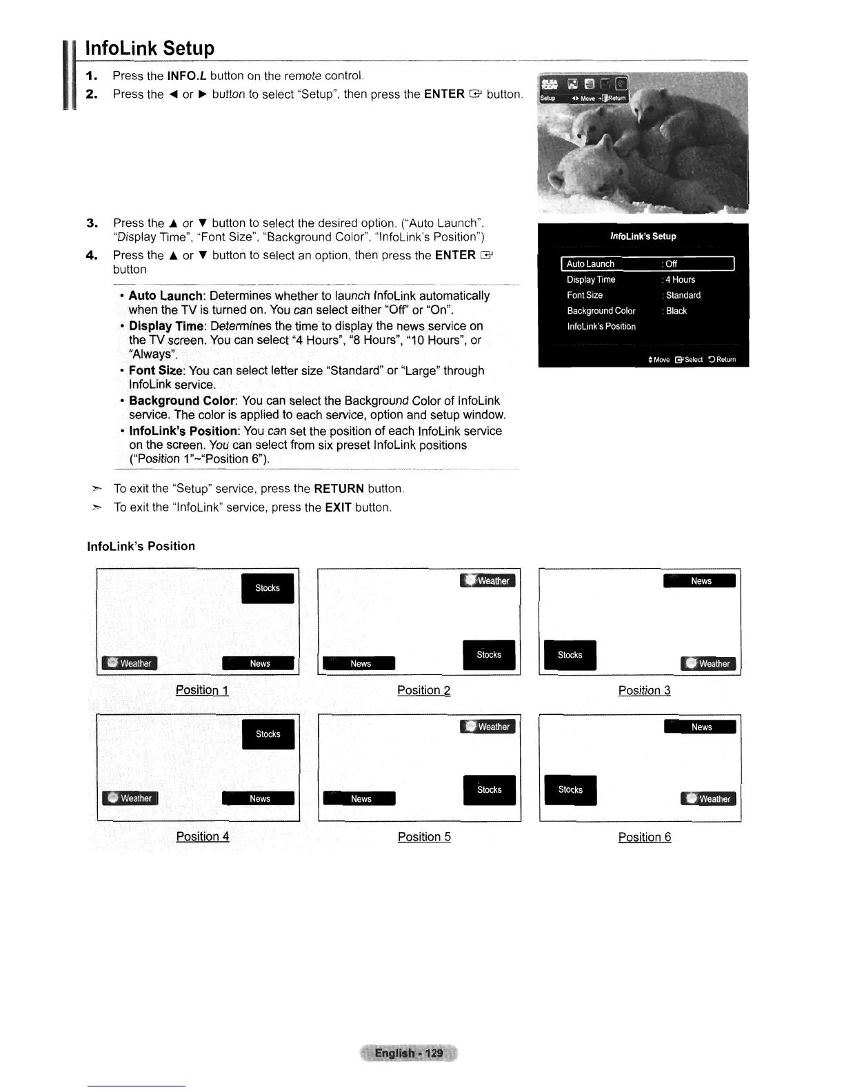 on the screen. You can select from six preset InfoLink positions
