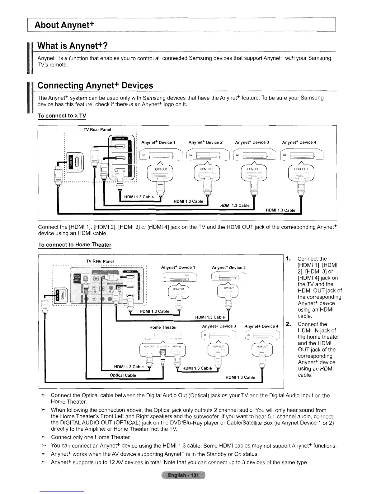 Anynet+ device using the HOMI 1.3 cable. Some HOMI cables may not support Anynet+ functions.