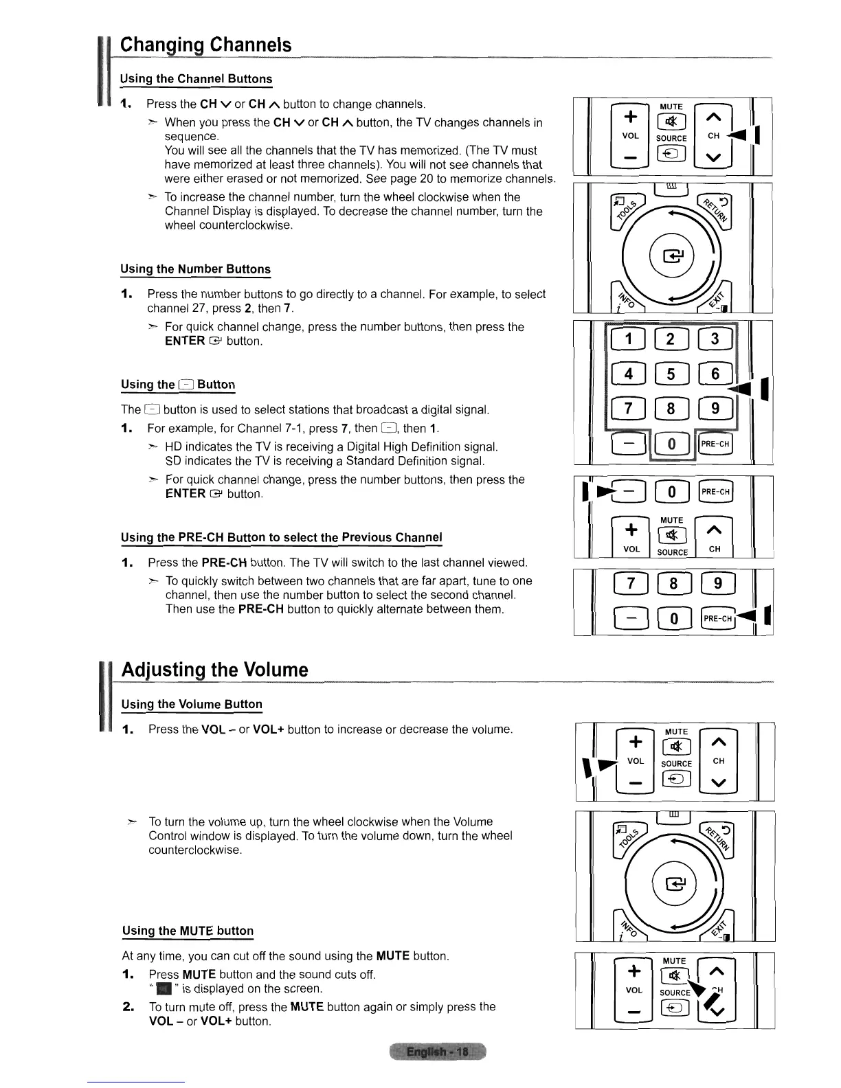 ,.. For quick channel change, press the number buttons, then press the