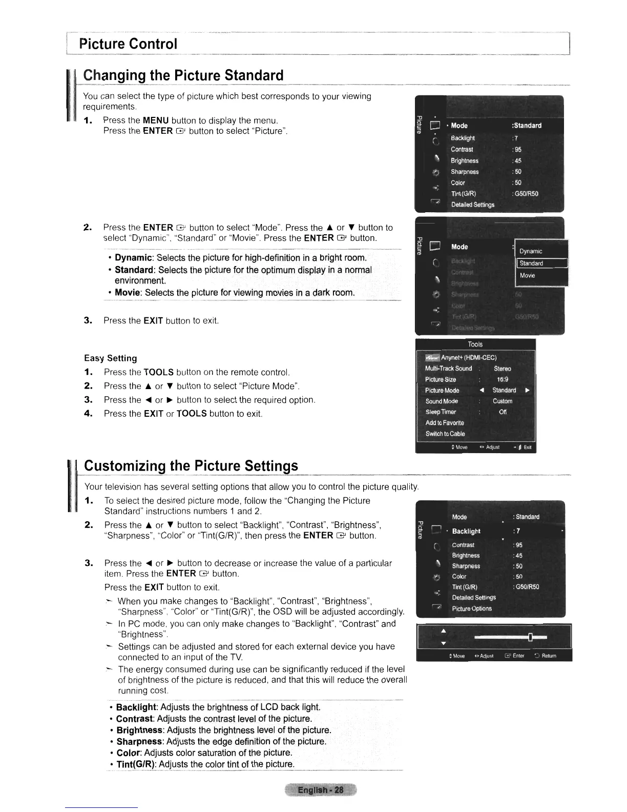 select the desired picture mode, follow the "Changing the Picture