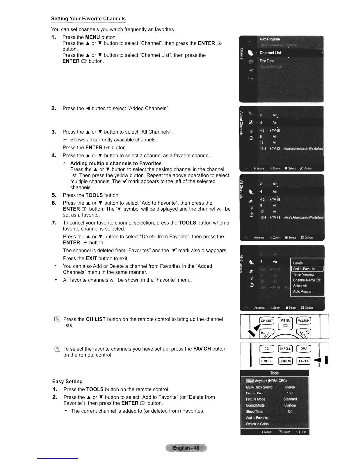 cancel your favorite channel selection, press the TOOLS button when a