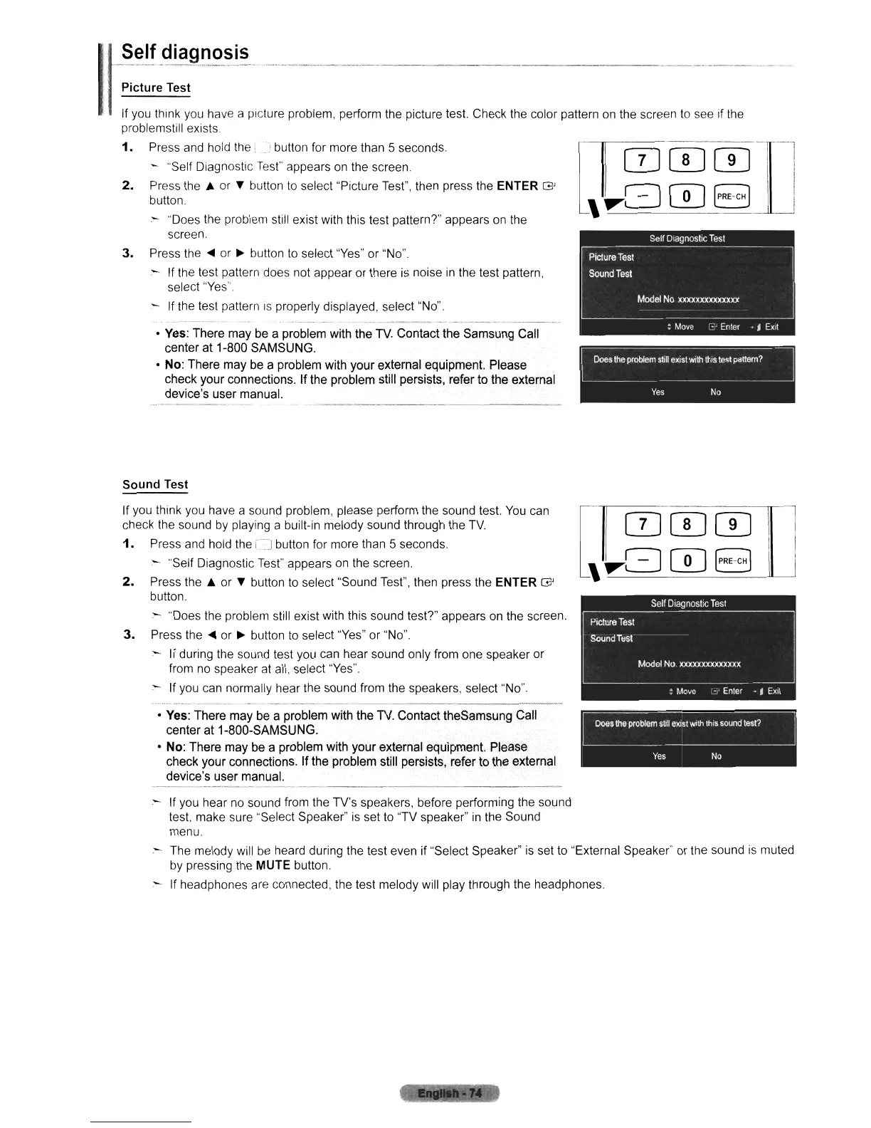 "Does the problem still exist with this sound tesP" appears on the screen.