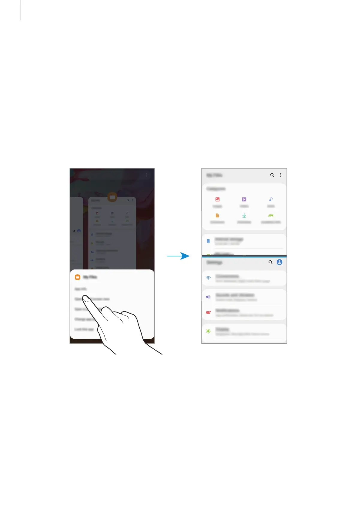 On the lower window, swipe left or right to select another app to launch.