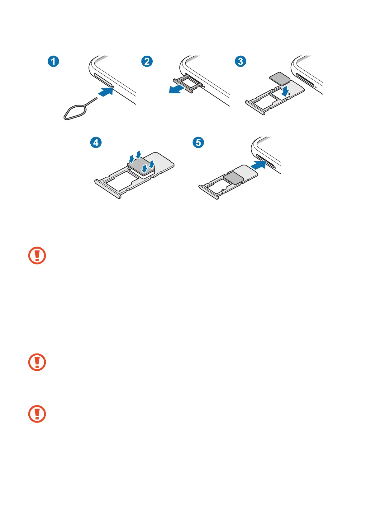Fully insert the tray into the tray slot to prevent liquid from entering your device.