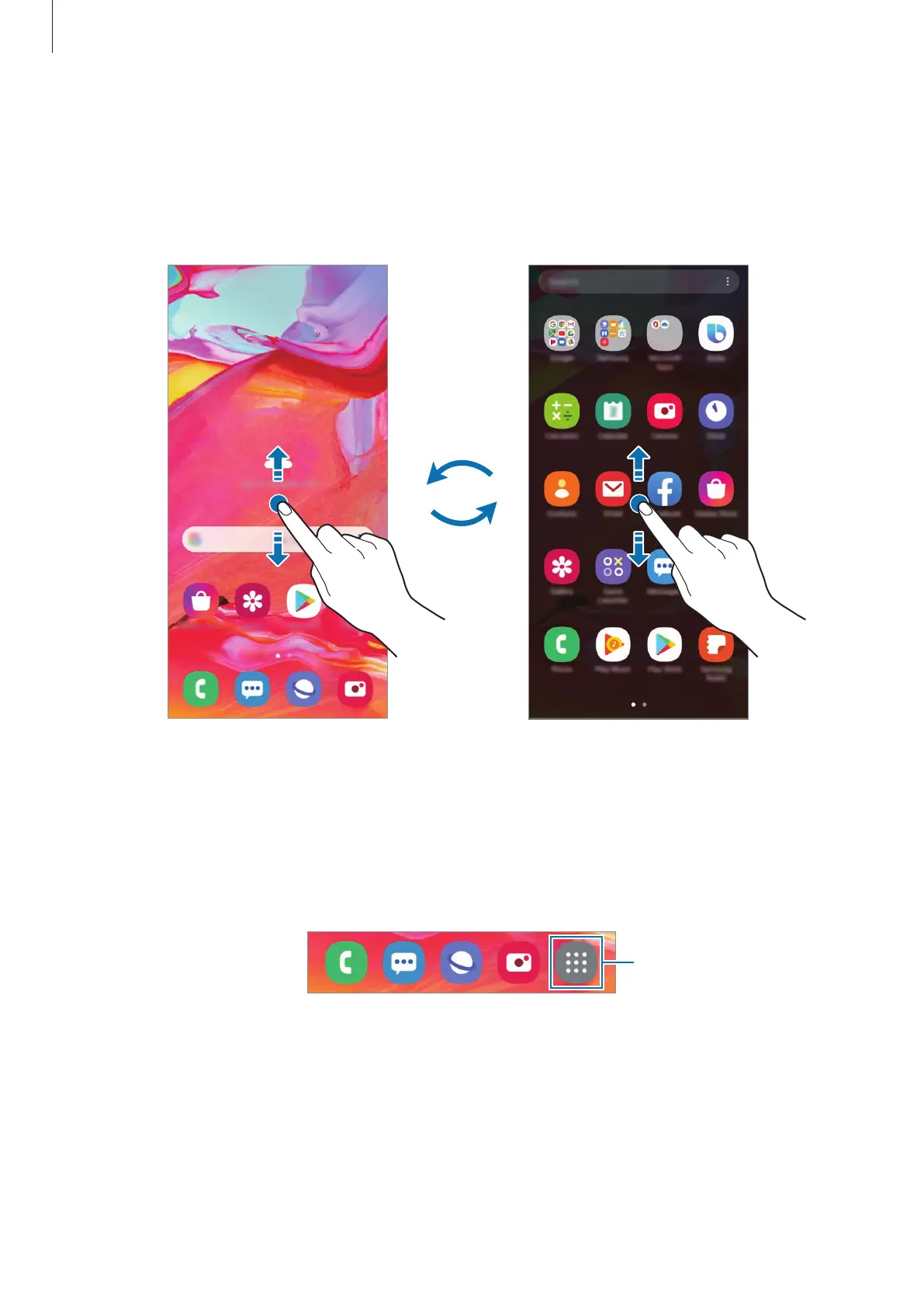 Switching between Home and Apps screens
