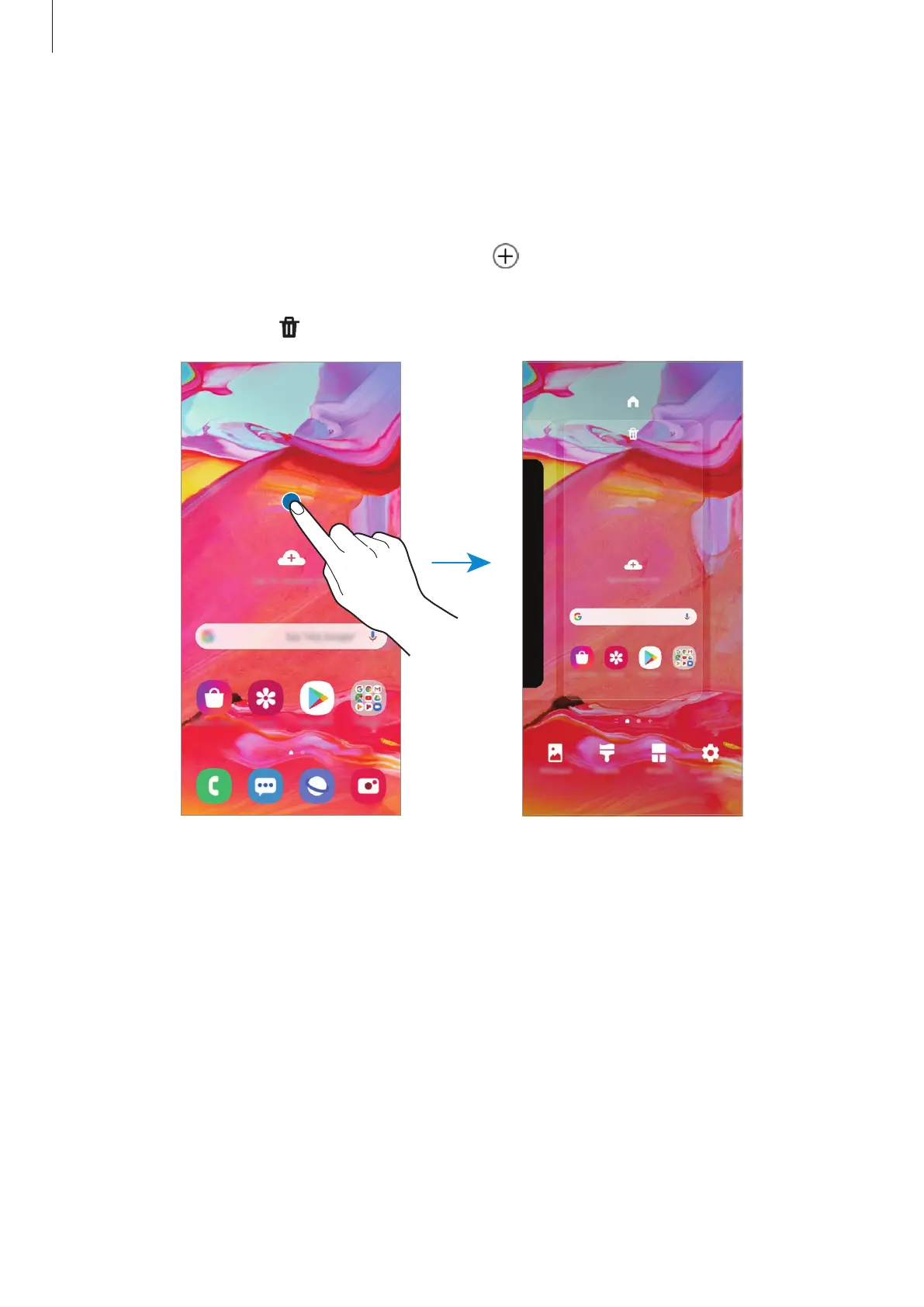 On the Home screen, tap and hold an empty area, or pinch your fingers together to access