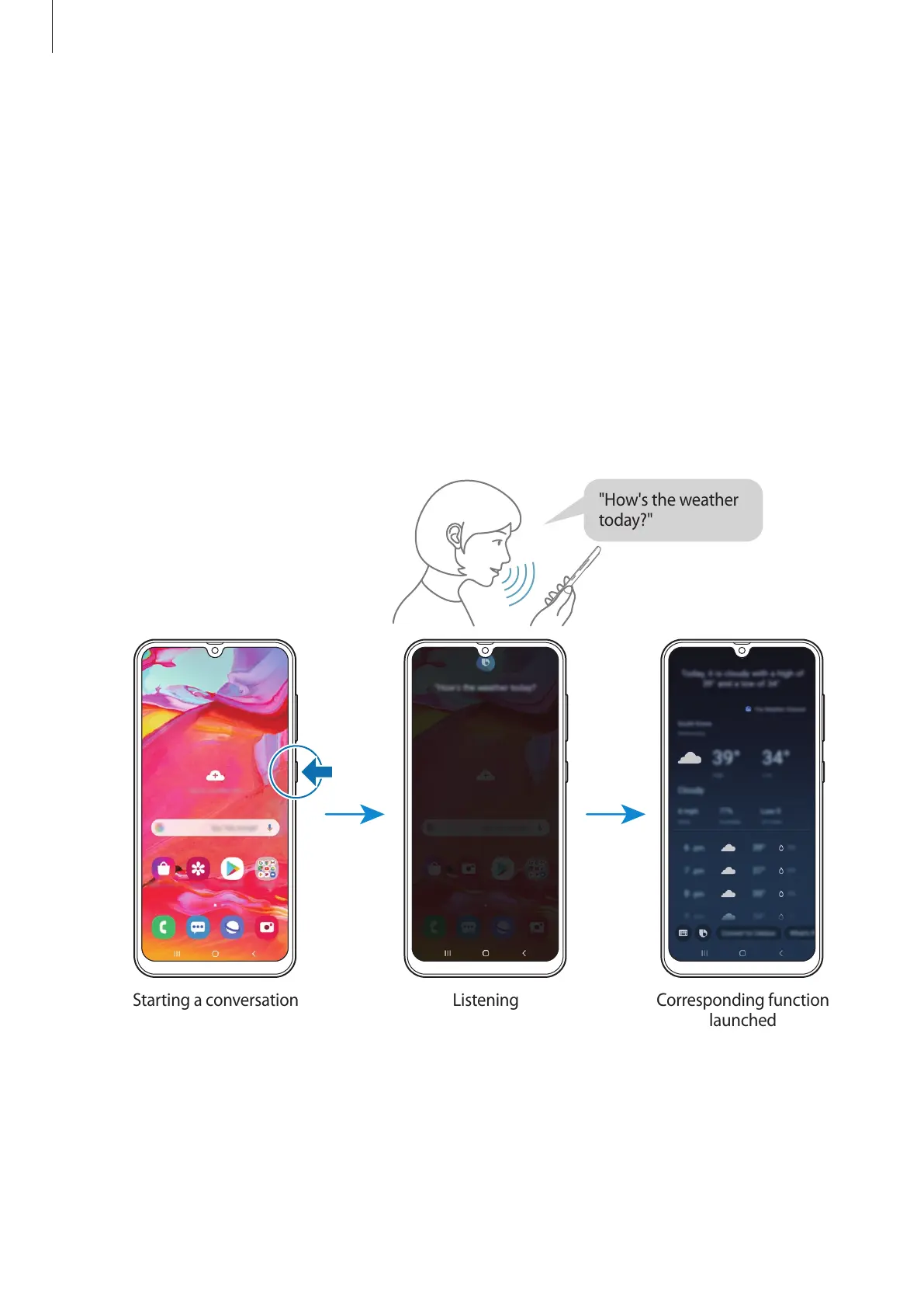 For example, while pressing and holding the Side key, say “How’s the weather today?” The