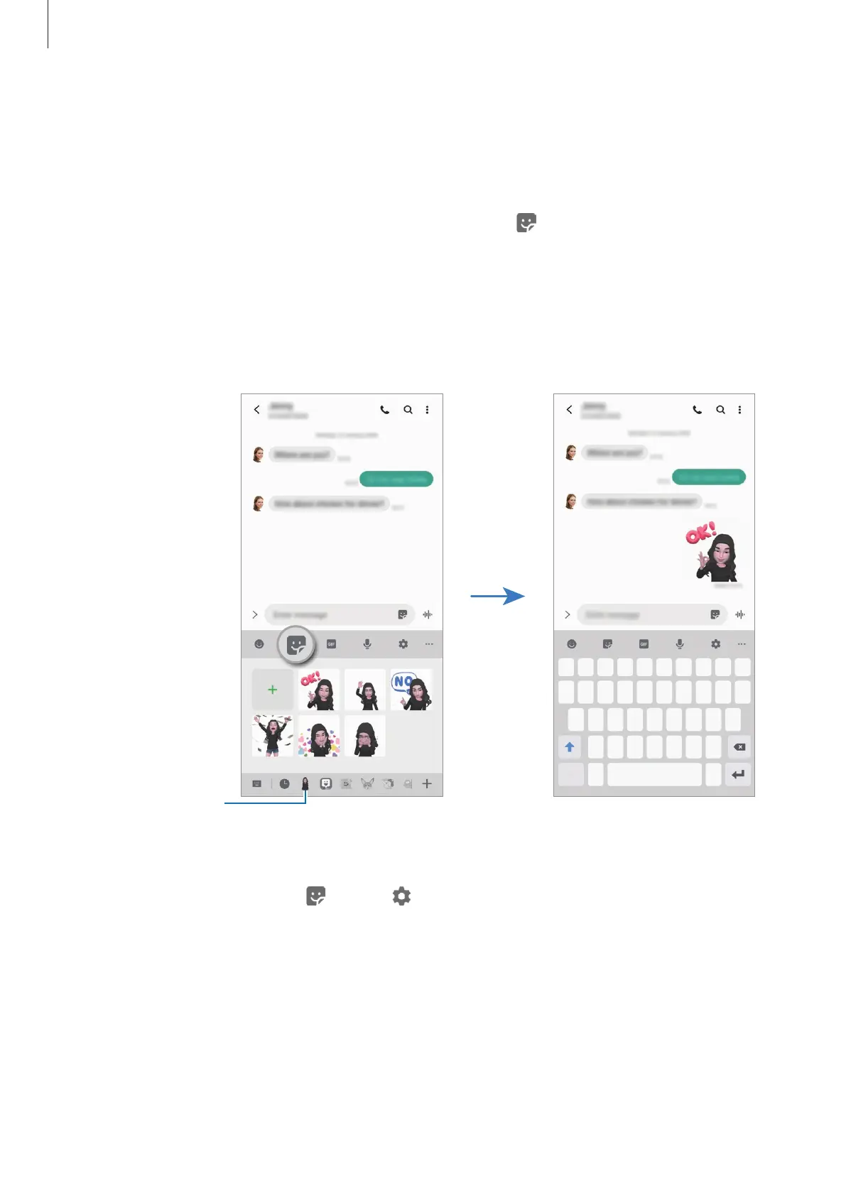On the Samsung keyboard, tap and tap at the bottom of the keyboard. Select the My