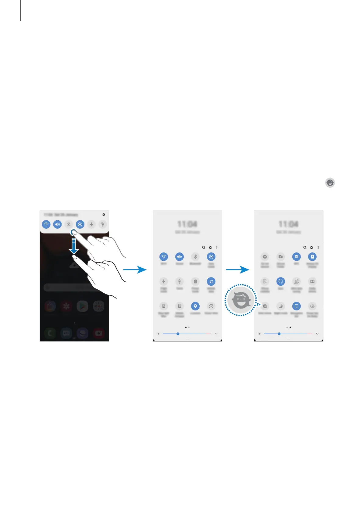 Open the notification panel, swipe downwards on the notification panel, and then tap