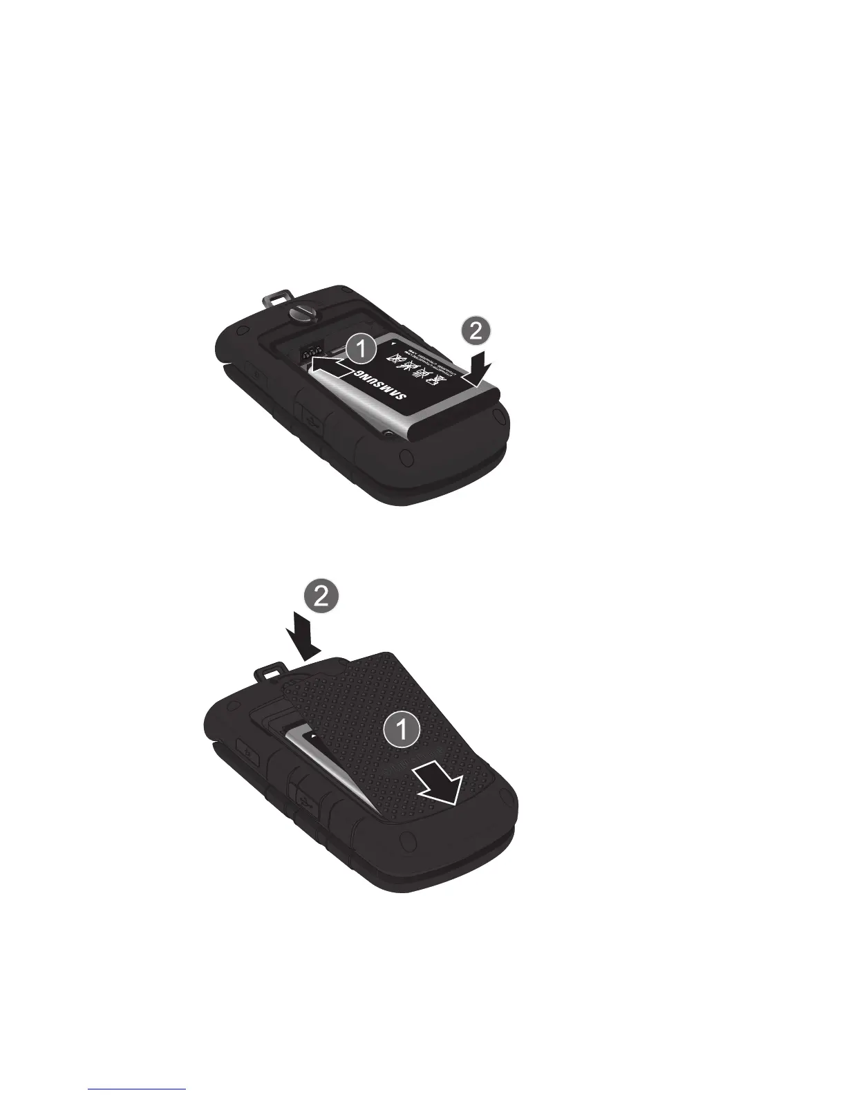 3. Place the cover back on the handset (1) the press down firmly (2).