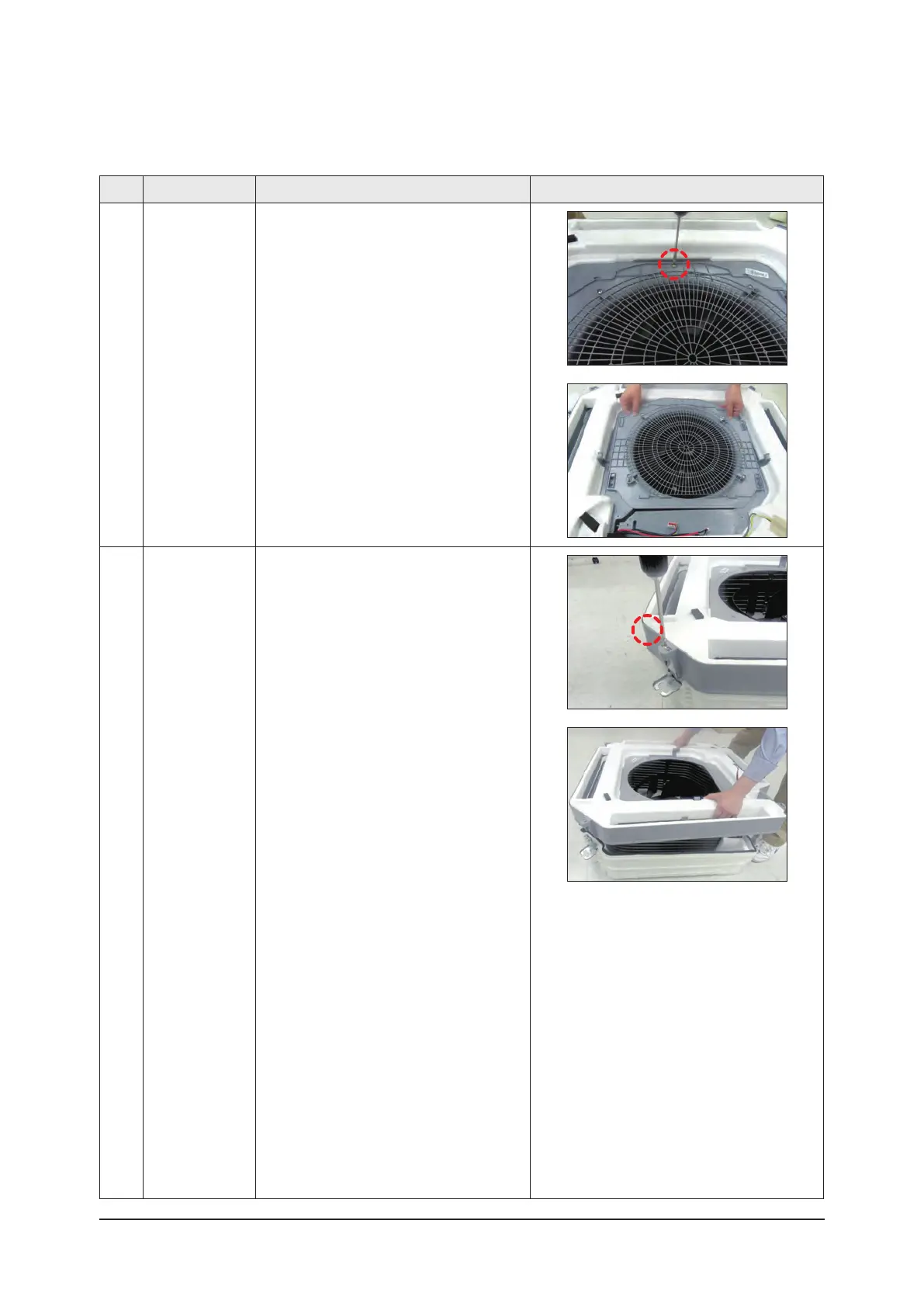 4 Drain Pan 1) Unscrew the screws on the 4 corners of the