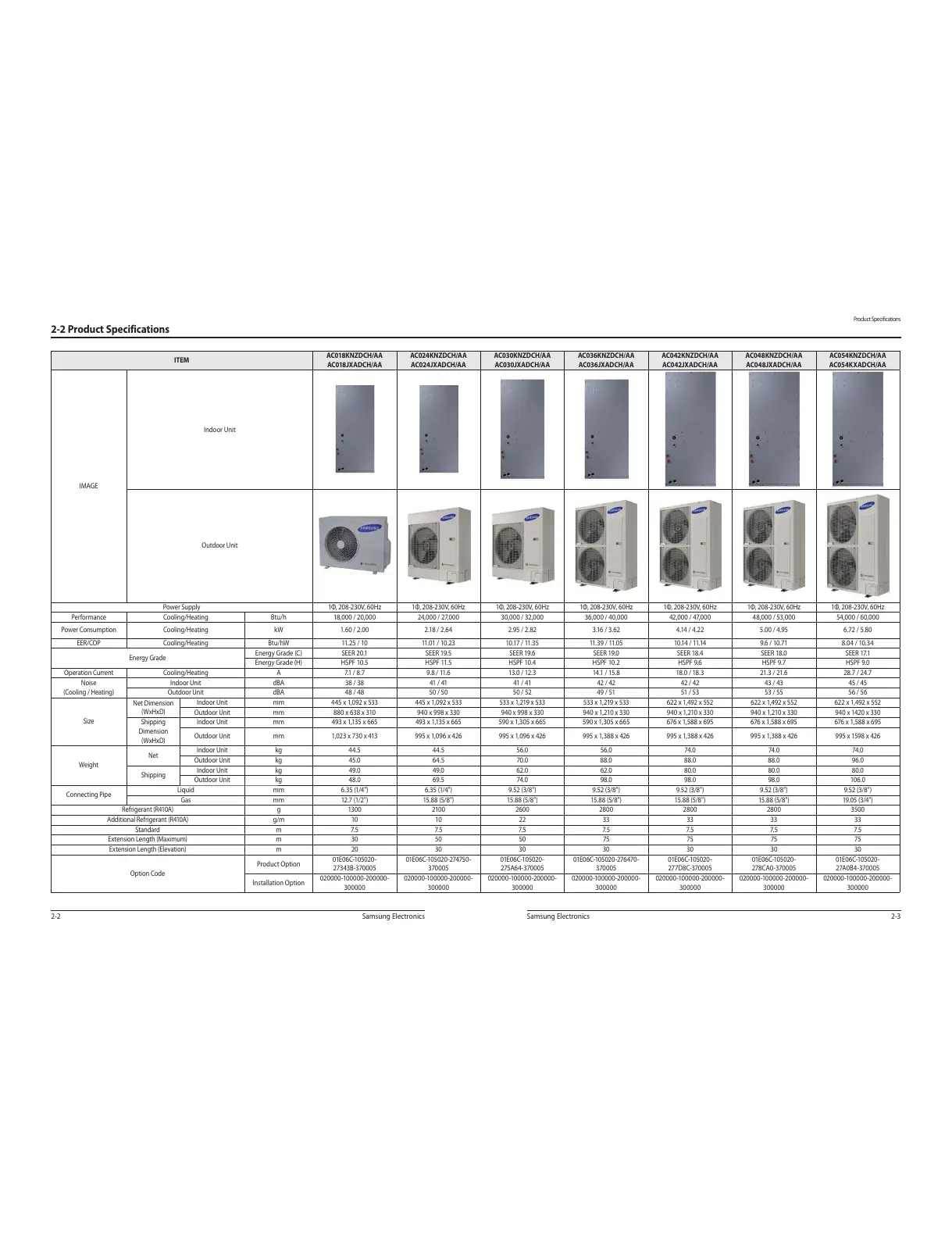 Btu/h 18,000 / 20,000 24,000 / 27,000 30,000 / 32,000 36,000 / 40,000 42,000 / 47,000 48,000 / 53,000 54,000 / 60,000