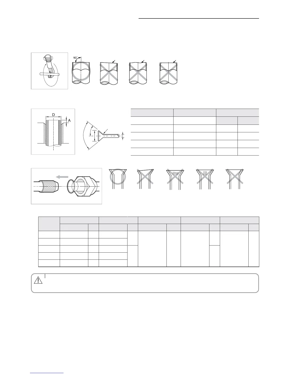 with the side of the pipe. Refer to the illustrations below for examples of edges cut correctly and incorrectly.
