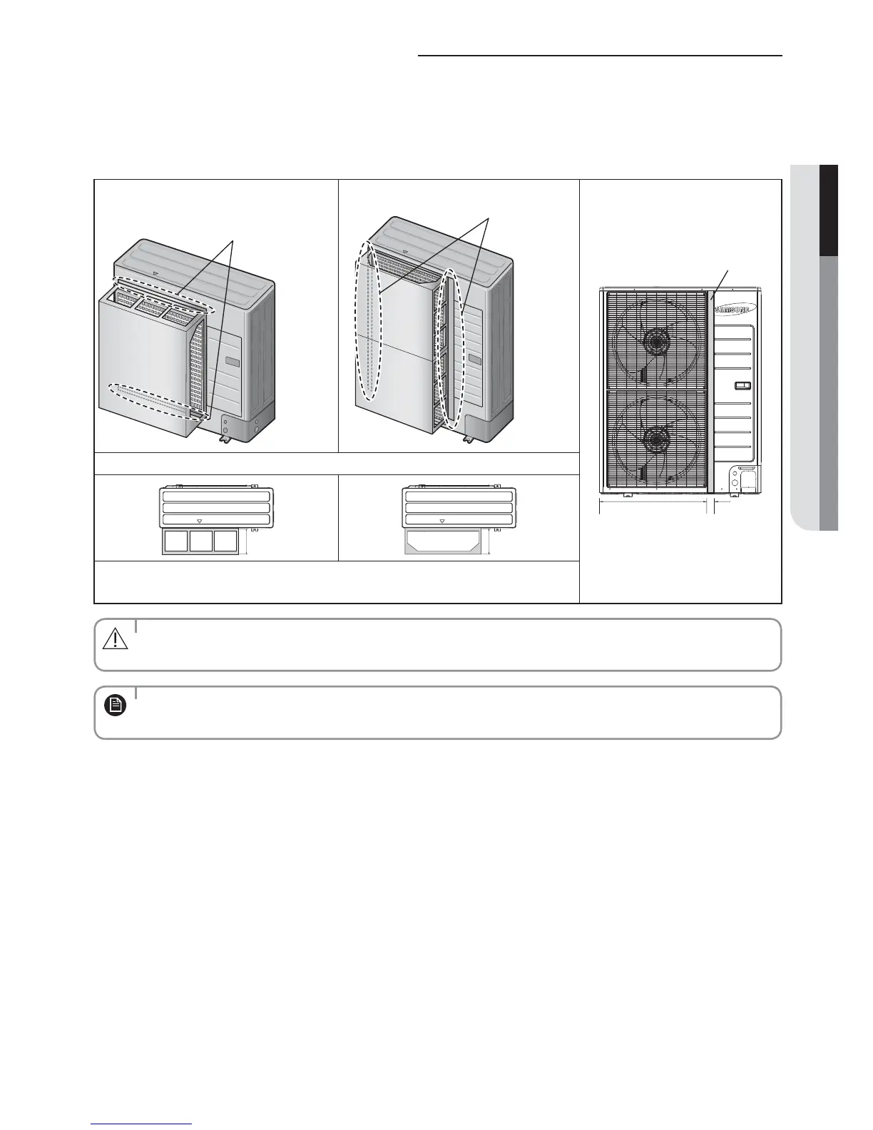 • Install outdoor units with the back surface facing wall side to eliminate the eects of external wind.