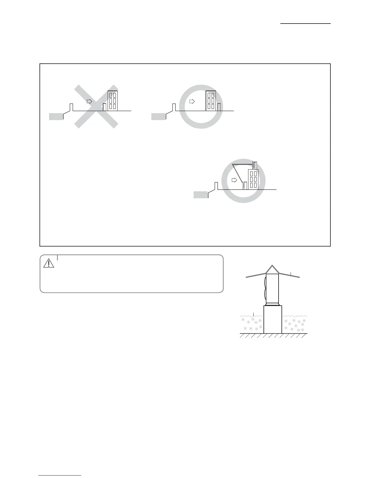 • In areas with heavy snow fall, piled snow could block the air