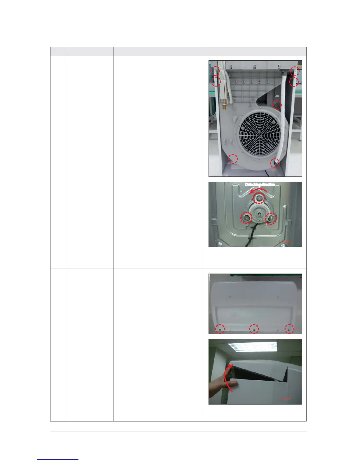 8 Ass’y Motor Blower 1) Loosen the 5 fixing screws of