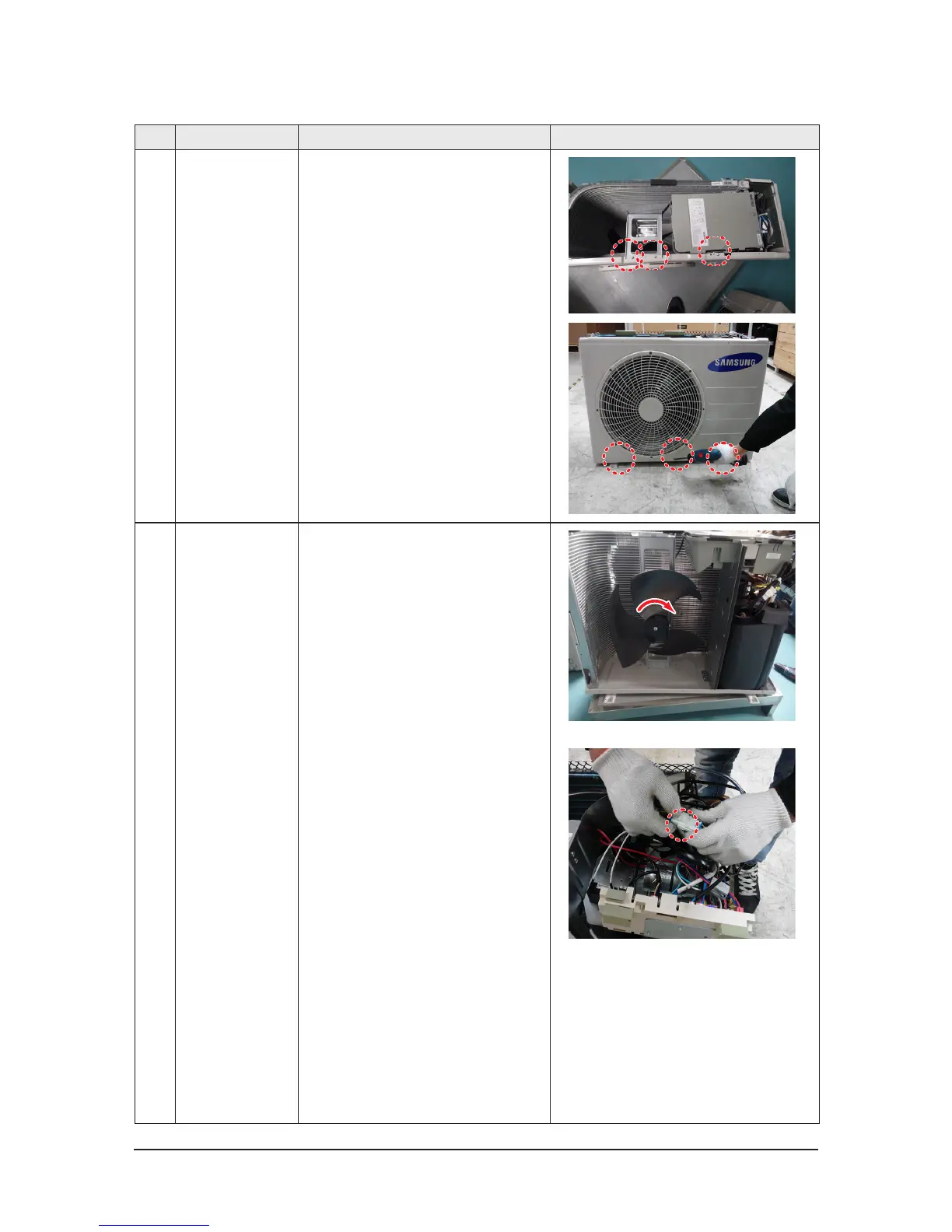 2 Fan& motor 1) Loosen the fan screw according the