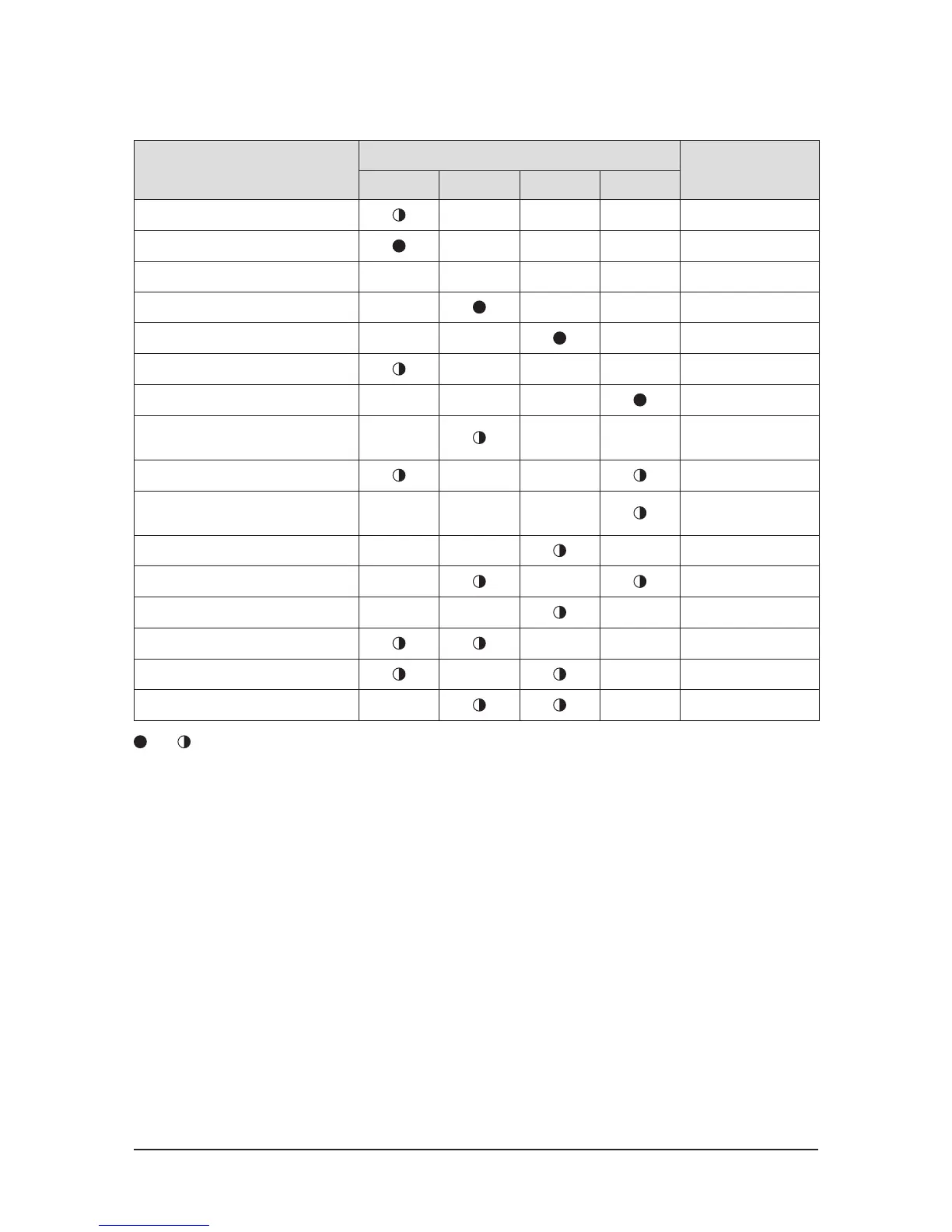 : On, : Blinking, X : Off