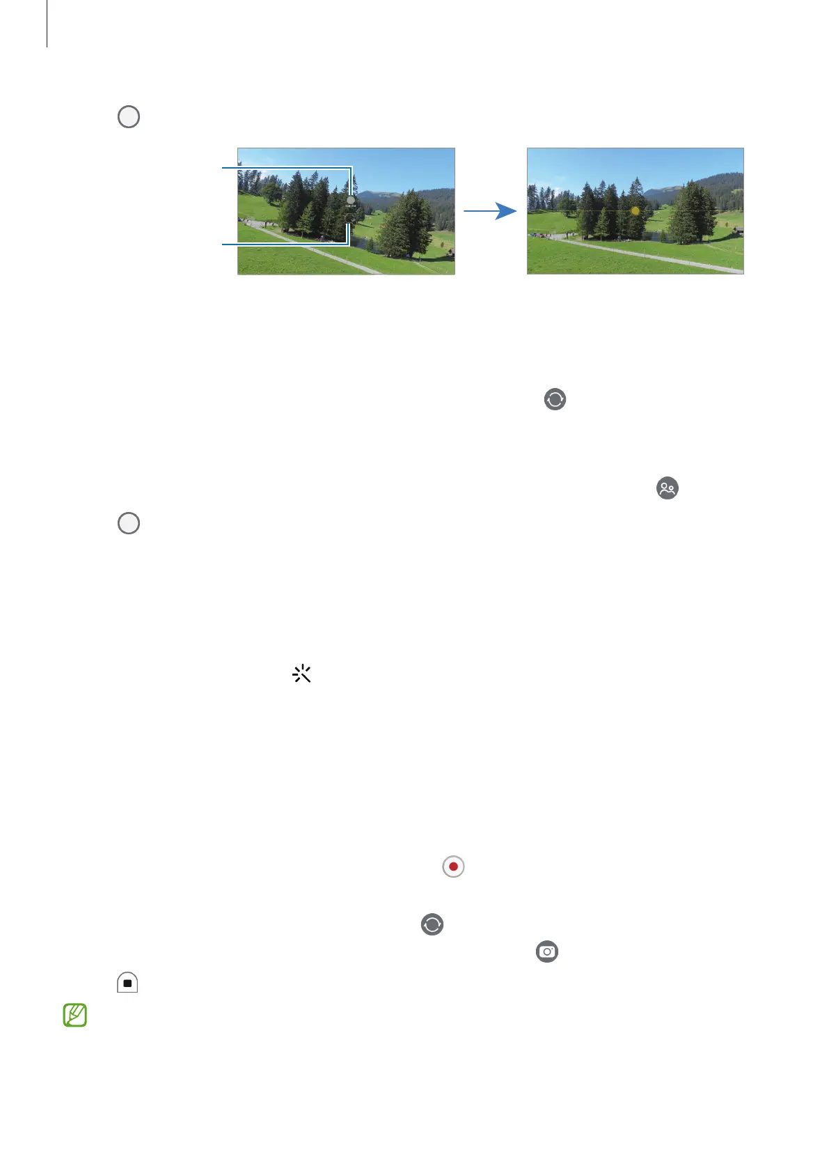 To take self-portraits with a wide-angle shot of the landscape or people, tap