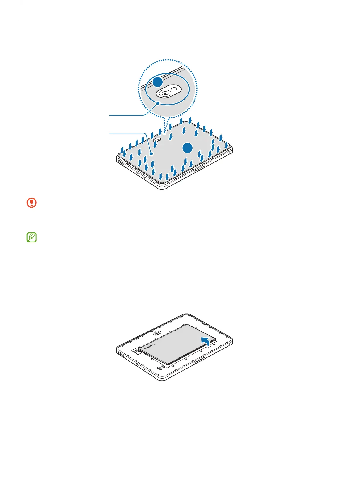 the device. Open or loose back cover may allow water and dust to enter the device and