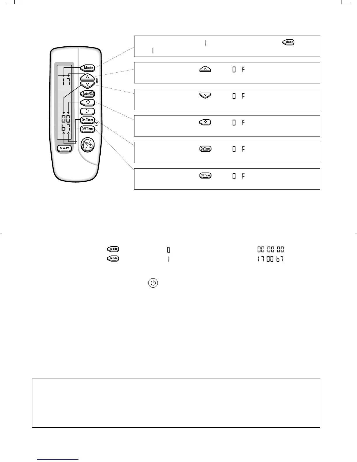 Third, Press ON/OFF key with the direction of remote controller for set.