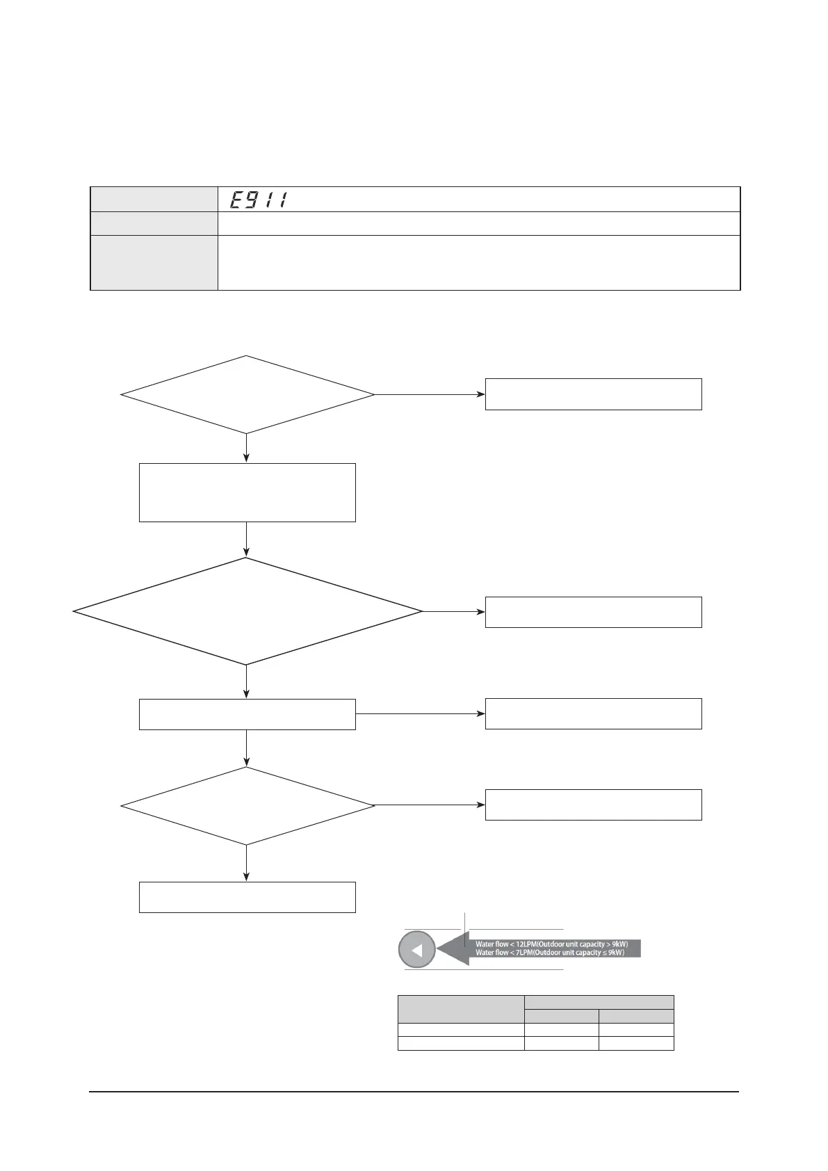 - Outdoor unit capacity > 9kW : When the water flow