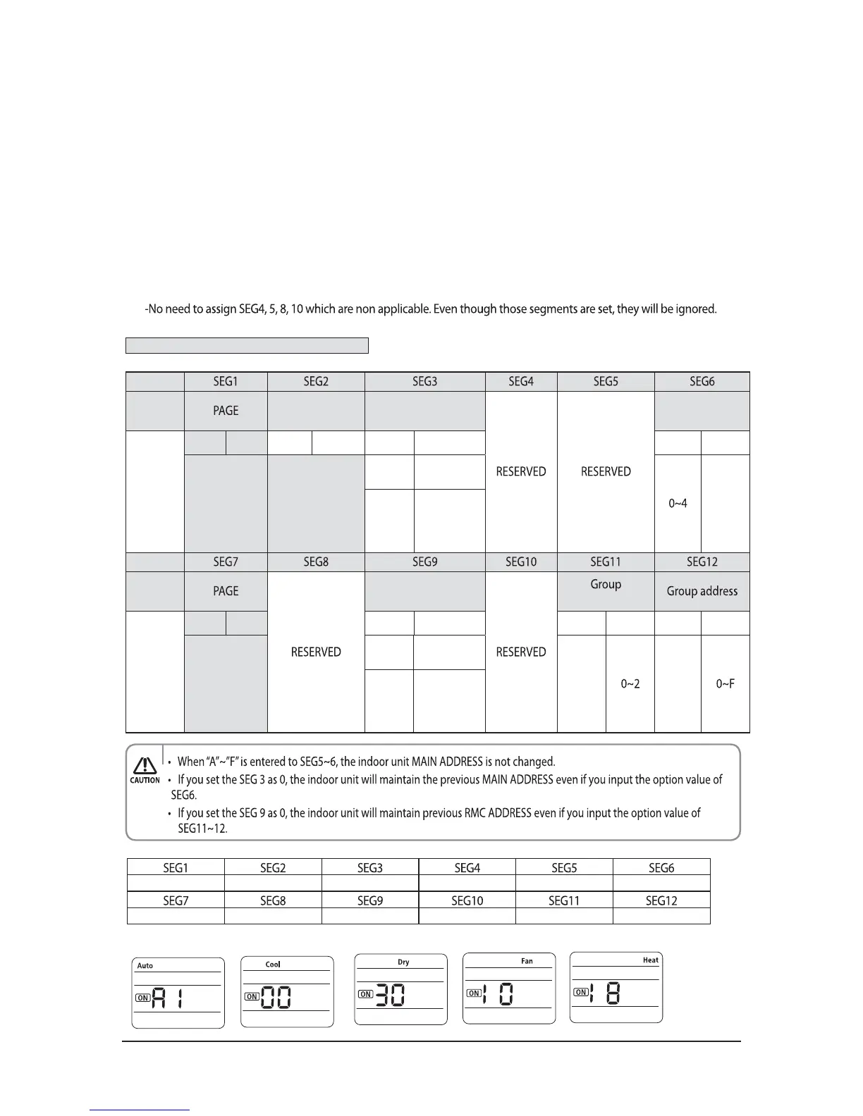 -If you set the applicable segments with numbers other than the indiciated, the initial setting will be maintained.