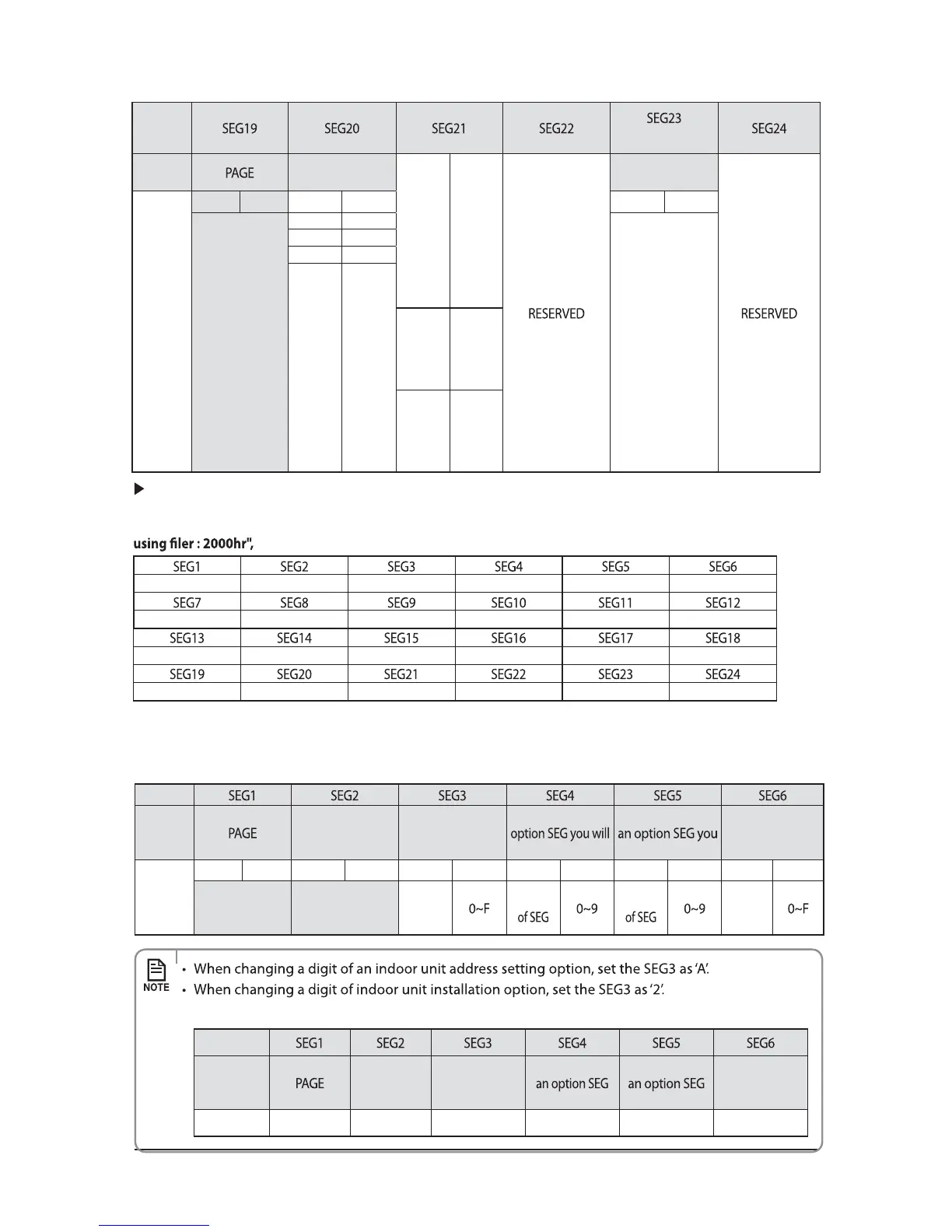 If you input a number other than 0~4 on the individual control of the indoor unit(SEG 20), the indoor is