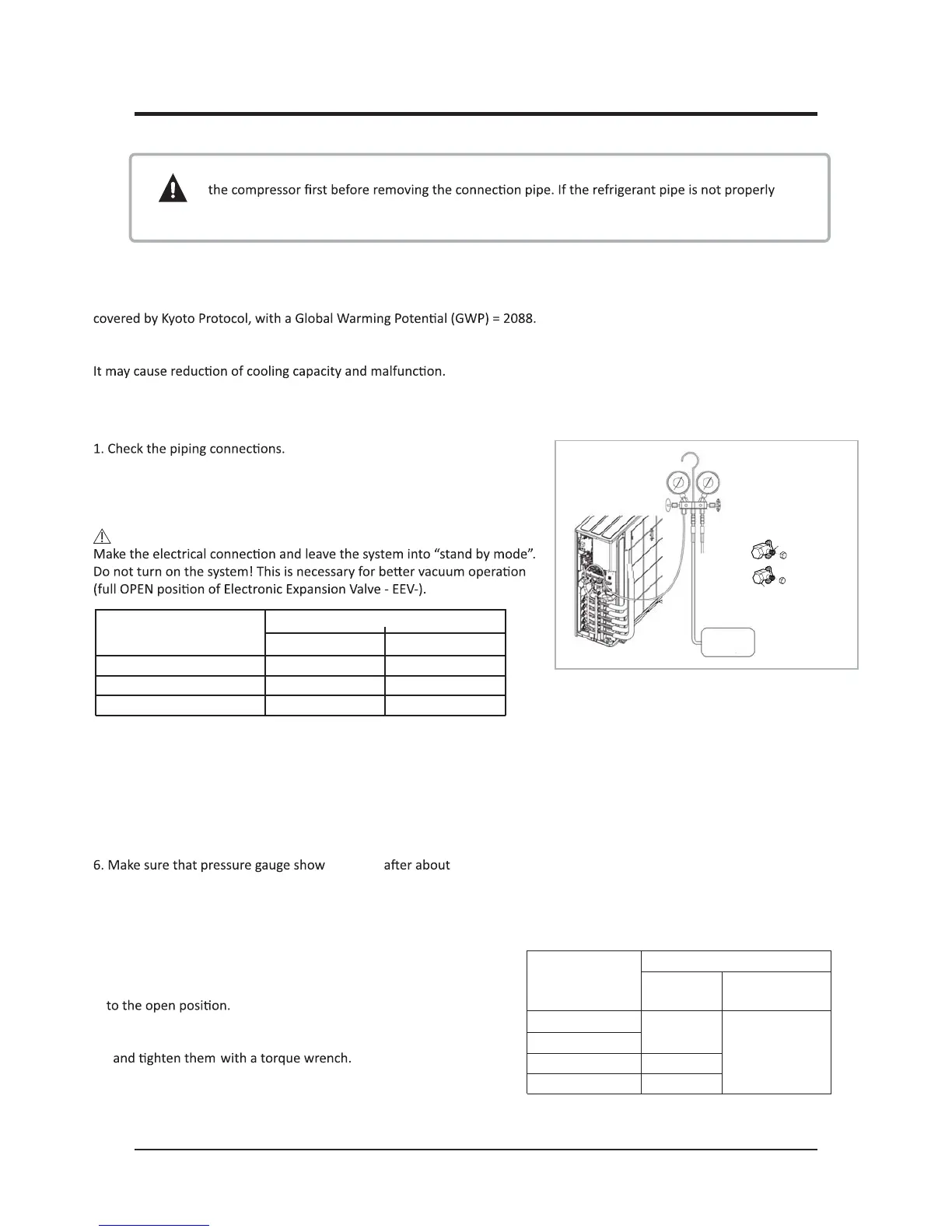 If air remains in the refrigerant pipes, it aīects the compressor.