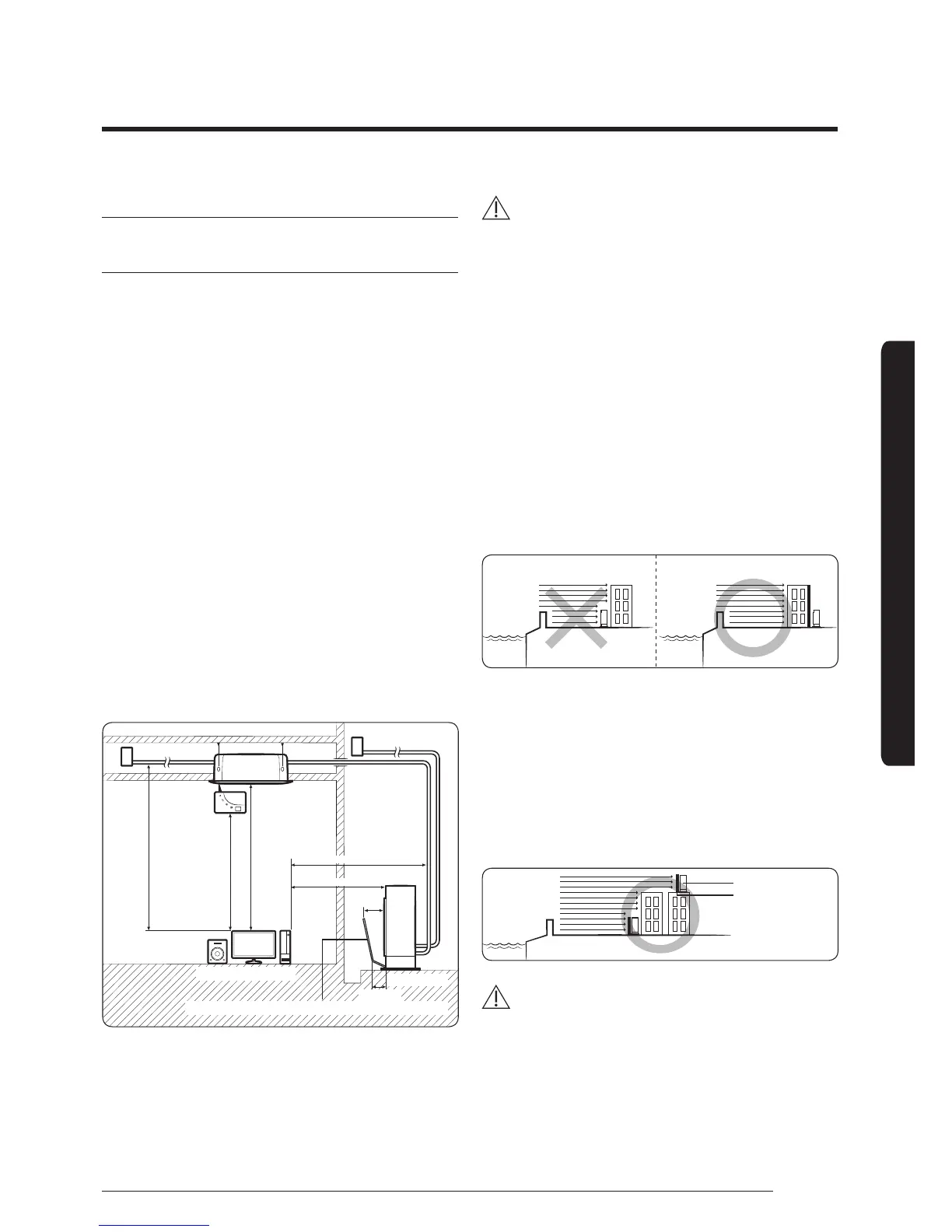 • If you cannot avoid installing the outdoor unit at the