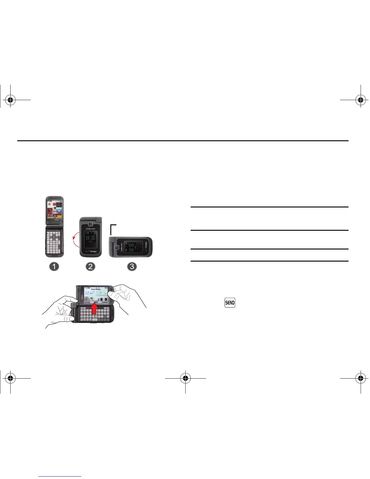 The following illustration shows how to properly open the phone