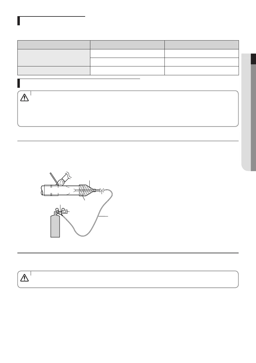 • When you test gas leakage after welding the pipes, use a designated solution for gas leakage detection. If you