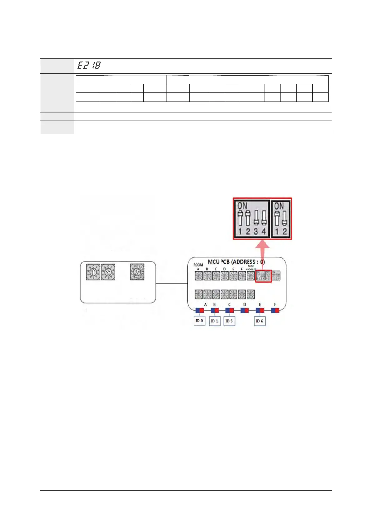 • Example of MCU indoor unit setting DIP switch error