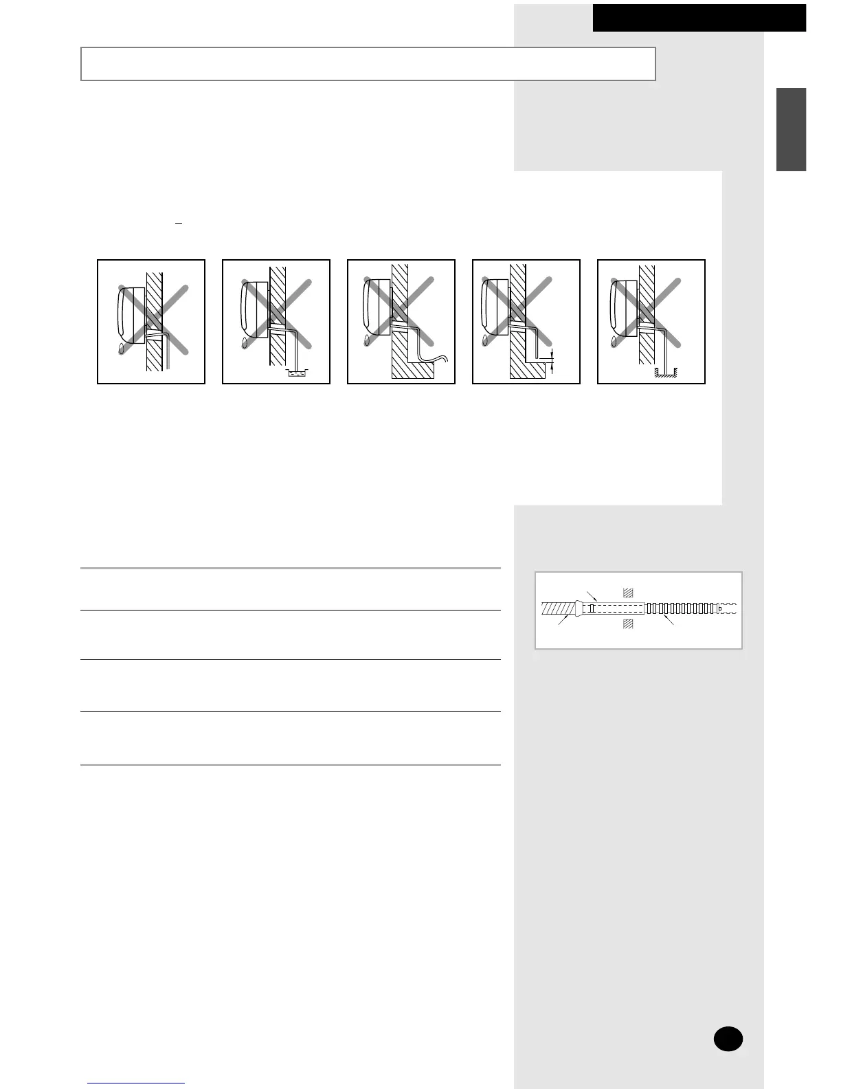 the 65mm( inch) hole drilled in the wall, check that none of the following situations occur.