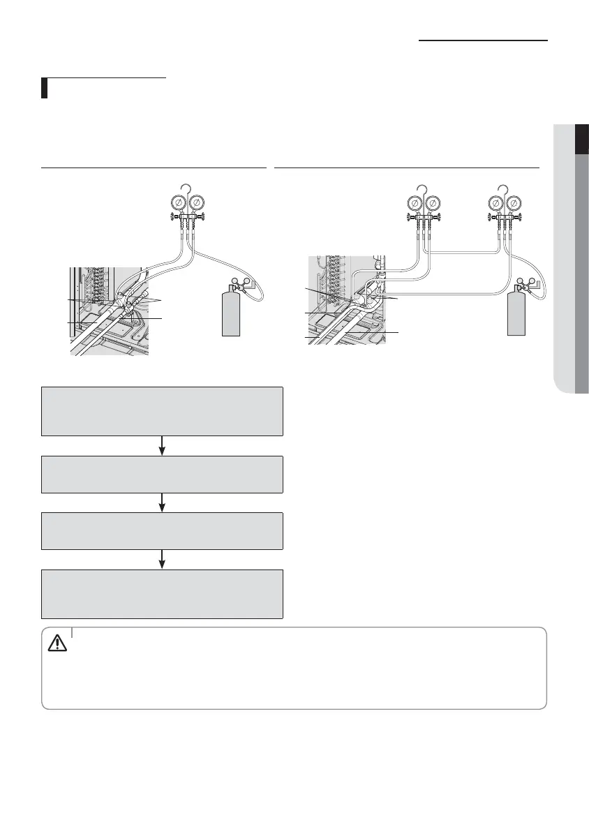 ࡛Perform a Nitrogen gas leak test with the service valve of the outdoor unit closed.