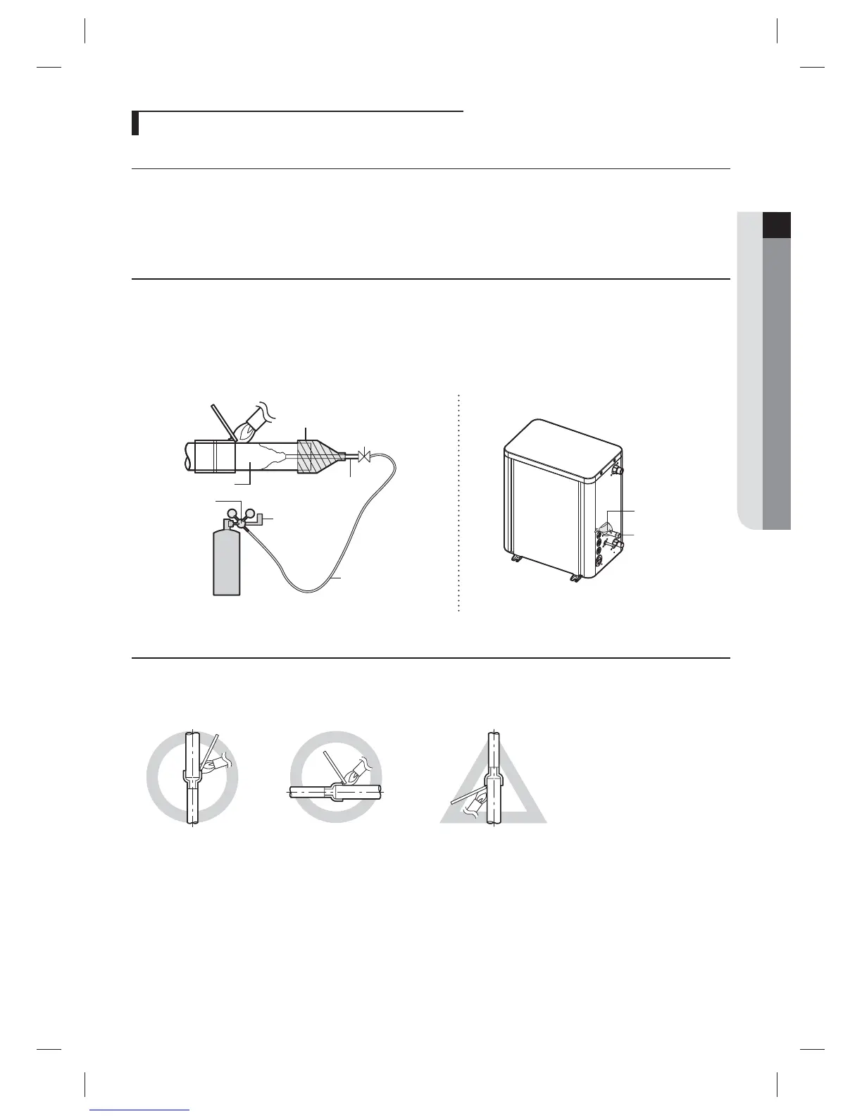 f When welding the refrigerant pipes, flush them with nitrogen gas as shown in the picture.