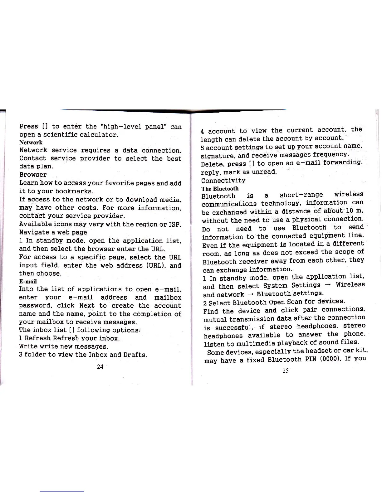 Samsung Android phone - Network;Browser; E-Mail; Connectivity; The Bluetooth