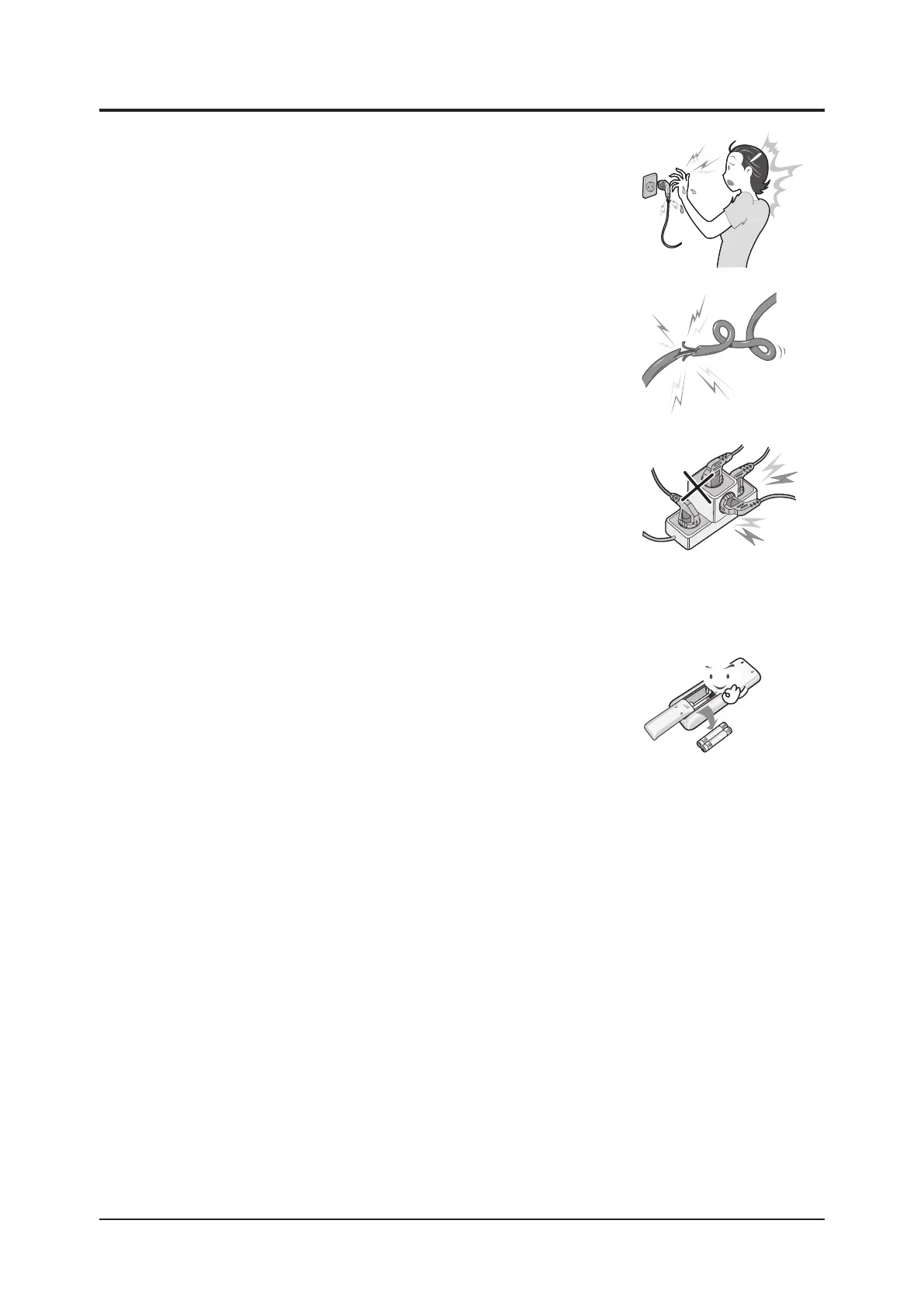 Do not pull any electric wires and do not touch an auxiliary power switch with a wet hand.