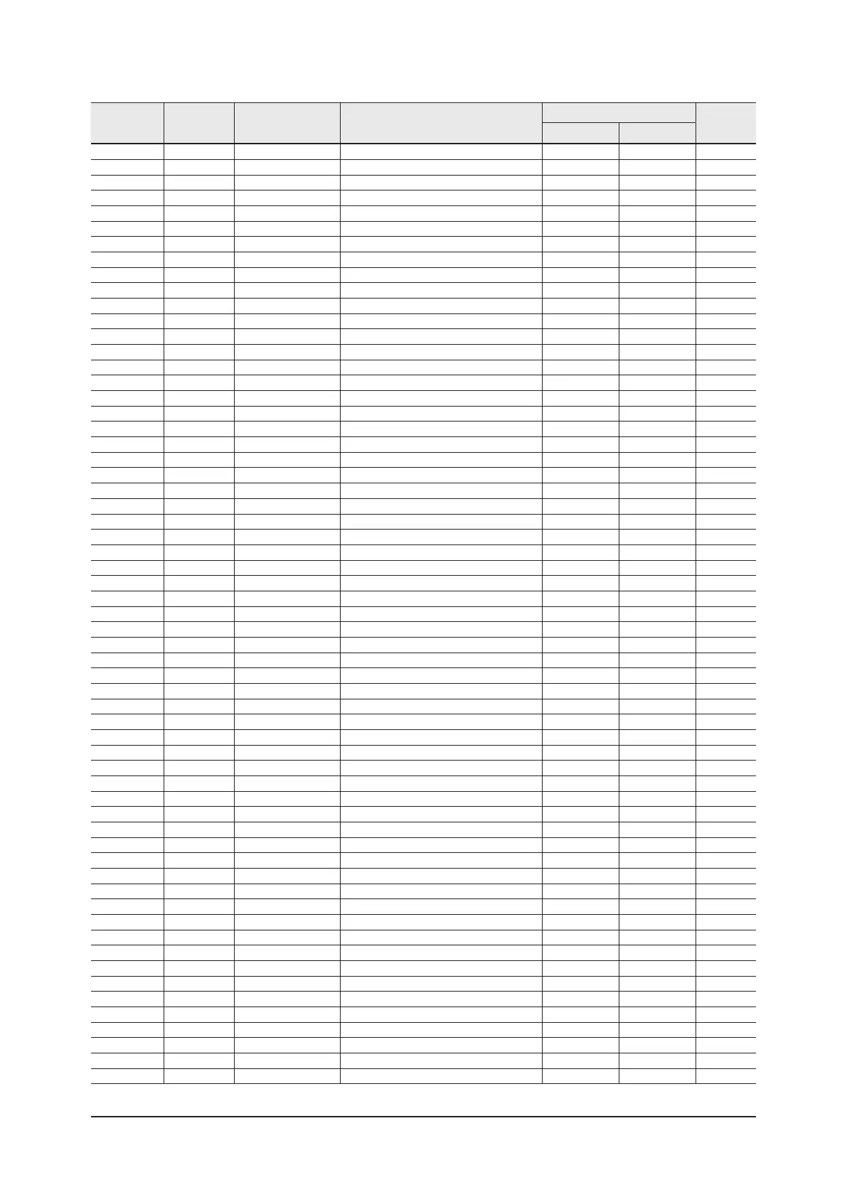 LOCATION No. CODE NO. Description Specification