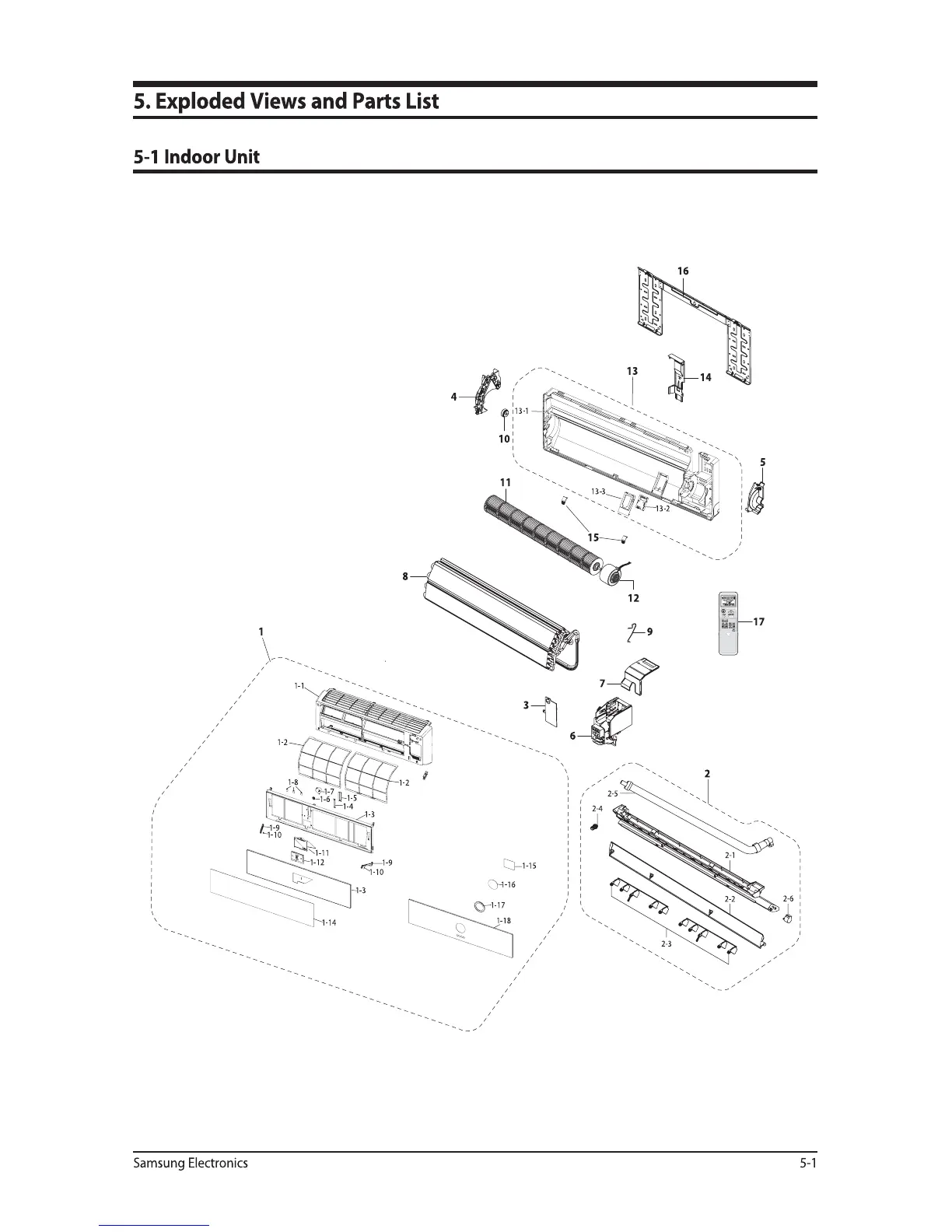 Samsung AQV12VBEX - Exploded Views and Parts List; Indoor Unit Exploded View and Parts