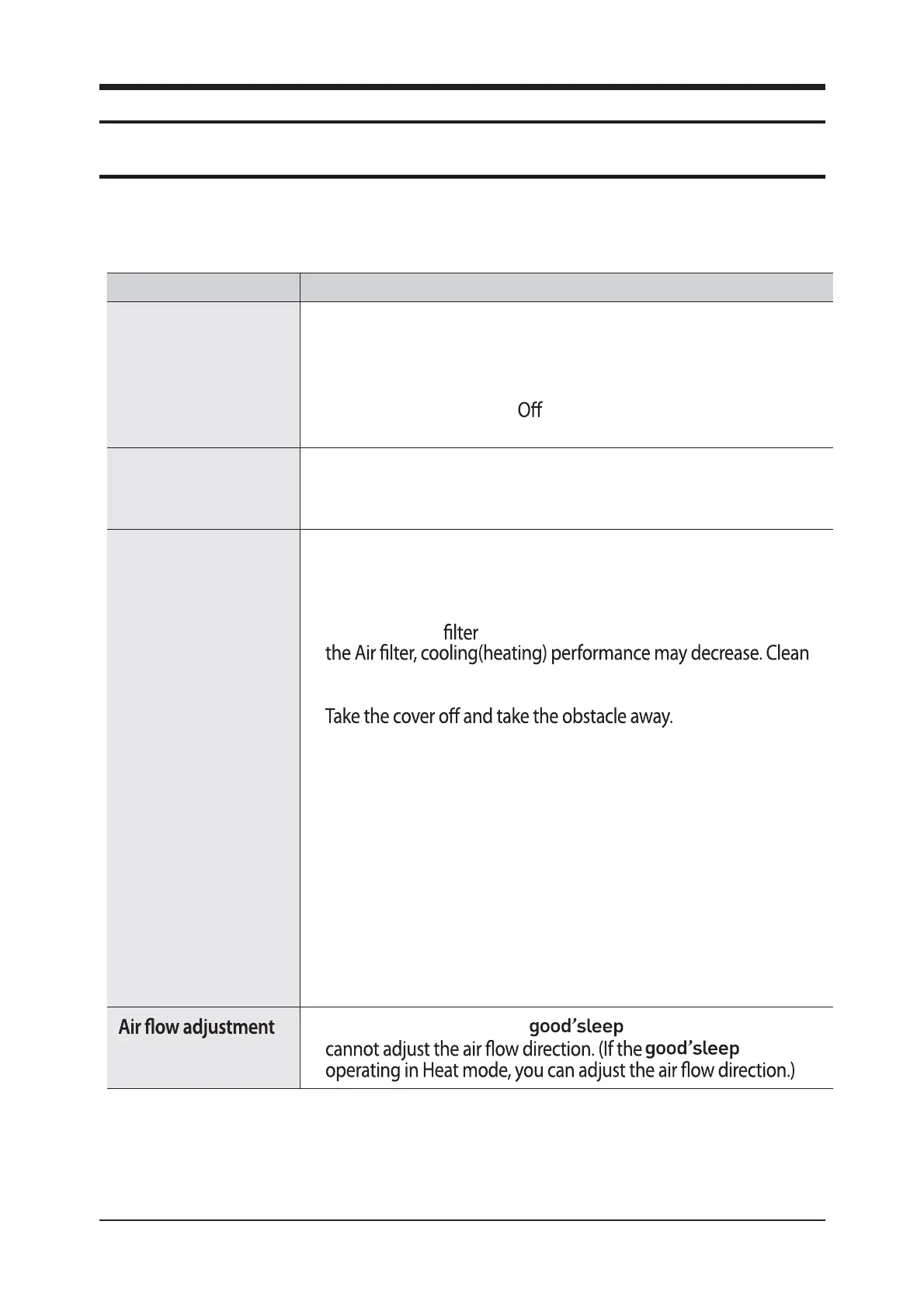t Check if the outdoor unit is covered or installed near the obstacle.