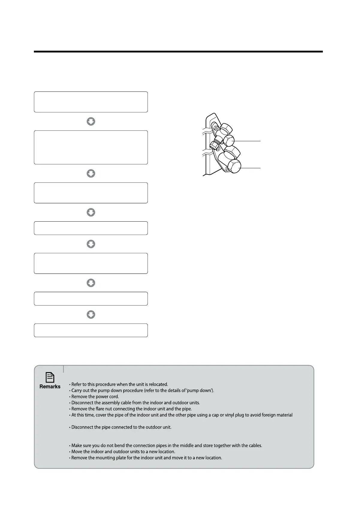 Pump down will be carried out when an evaporator is replaced or when the unit is relocated in another area.