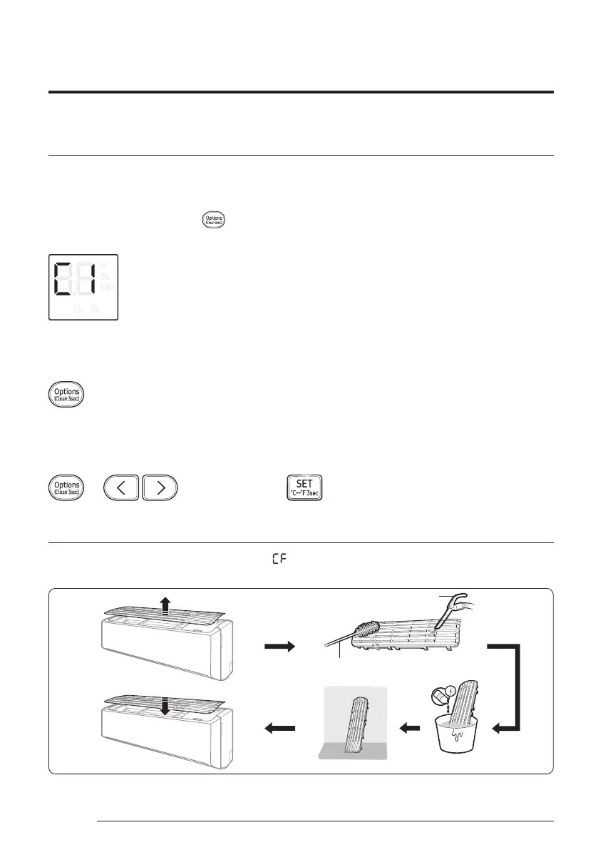 To activate Auto clean, press the (Options) button for at least 3 seconds.